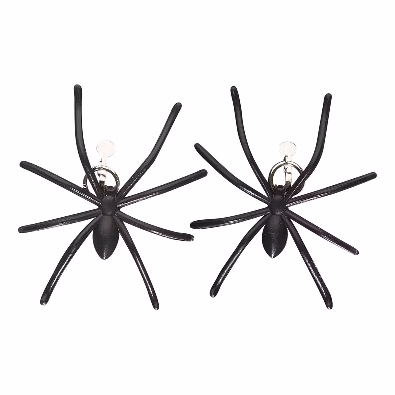 Örhängen Spindlar är två örhängen med stora svarta spindlar som du enkelt fäster i örsnibbarna; inga hål behövs eftersom de är clip-on örhängen. Klockren accessoar till din halloweendräkt!