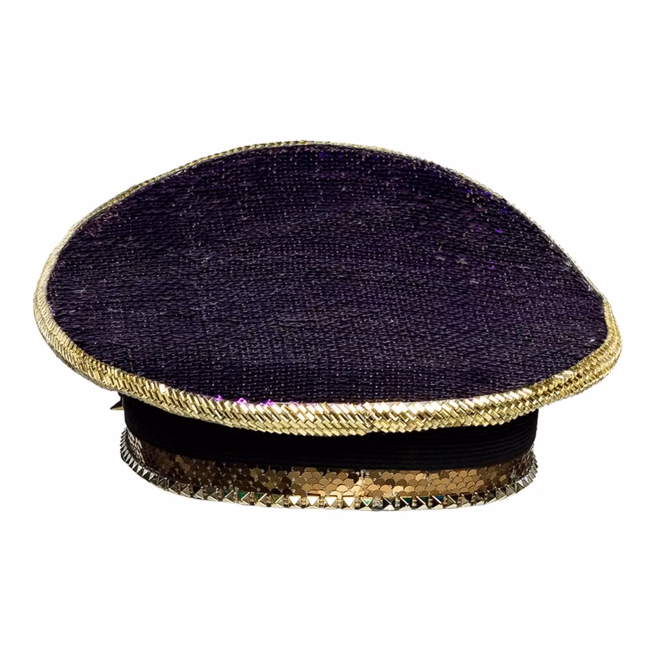 Paljettkeps Steampunk består av en skimrande paljettkeps med gulddetaljer och inte minst ett par matchande steampunk-glasögon. Både hatten och glasögonen fästs på huvudet med hjälp av ett elastiskt resårband som även är justerbart.