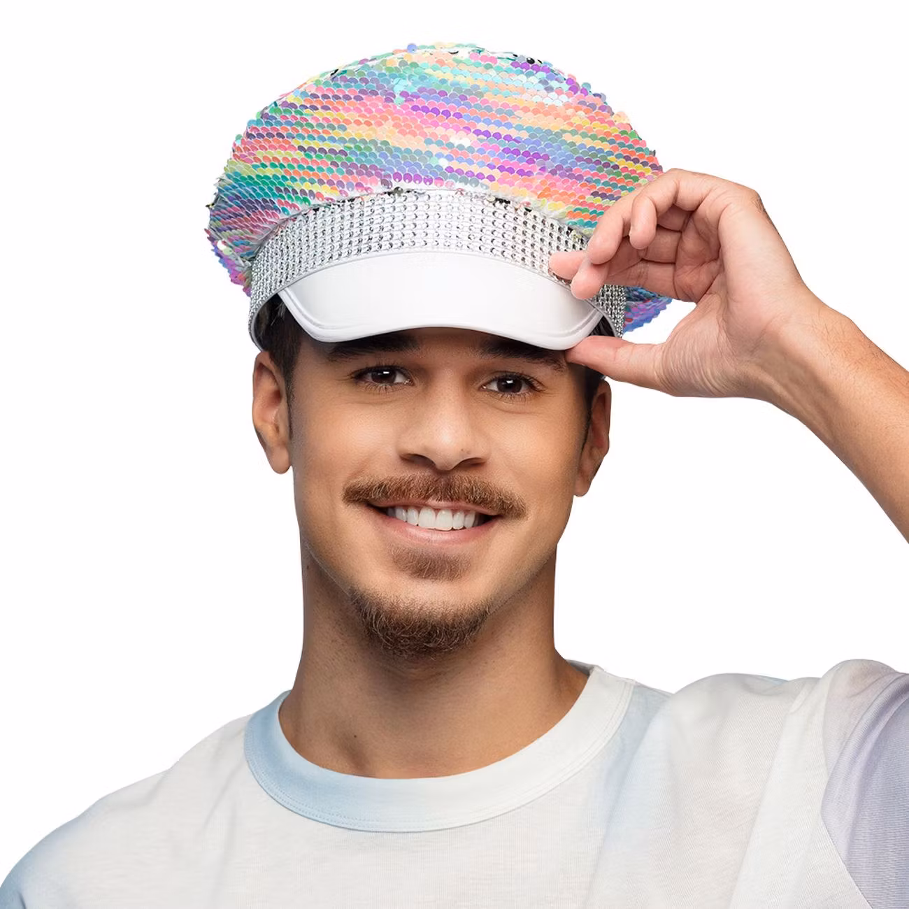 Regnbåge eller silver? Här får du två i ett! Den ultimata kepsen för dig med beslutsångest. Bara svep över paljetterna för att enkelt skifta färg. En galet snygg keps som passar lika bra till Pride som till sommarens festivaler eller temafester!