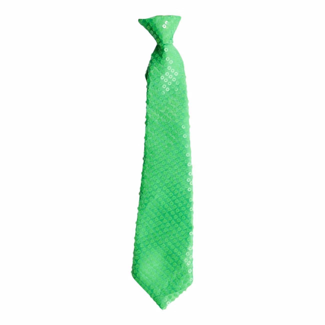 Paljettslips Neongrön är en klassisk slips täckt med glittrande paljetter i grön neonfärg. Slipsen sitter runt halsen med hjälp av ett elastiskt resårband som passar de flesta.