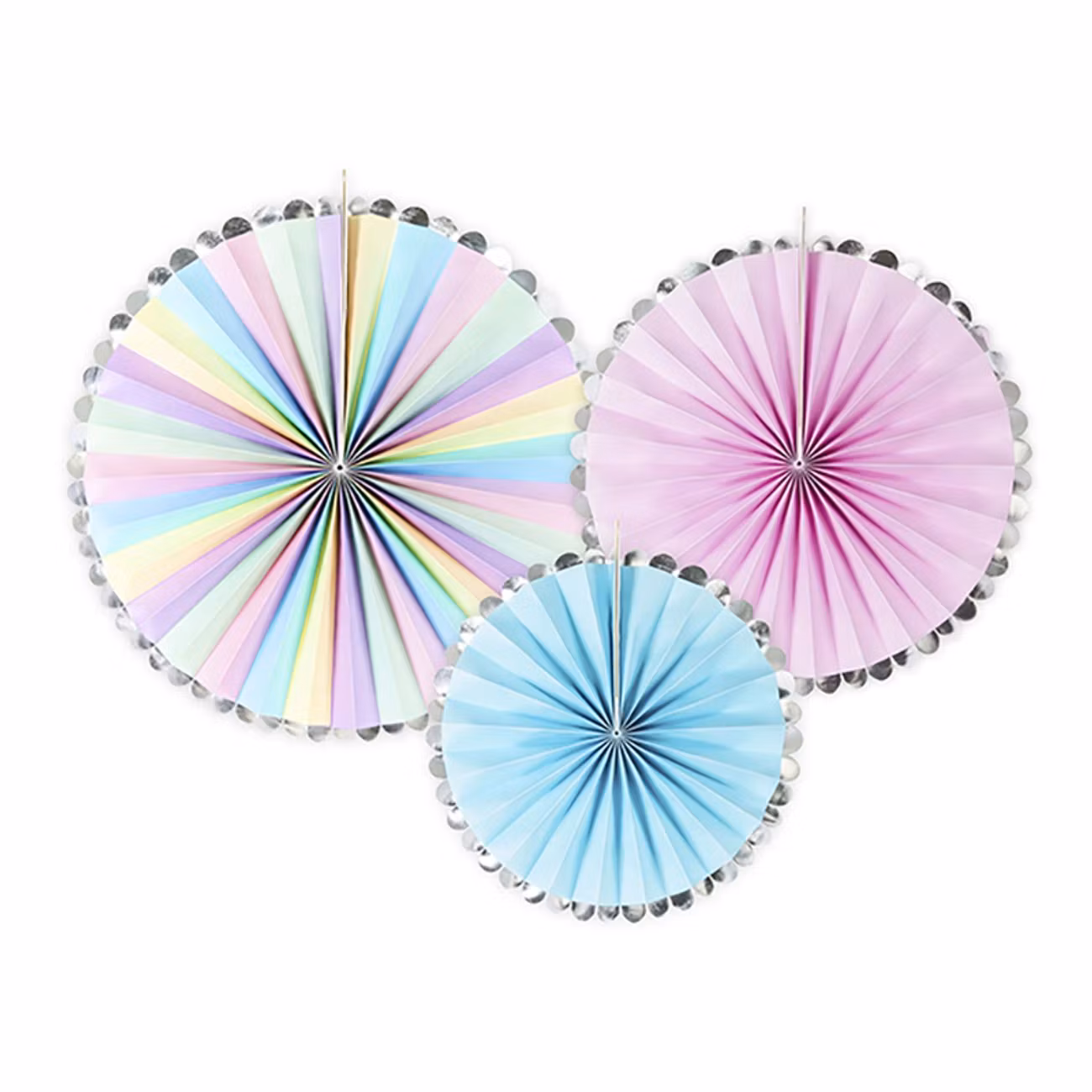 Pappersfjädrar Pastellmix inkluderar tre stycken dekorationsfjädrar i papp i olika storlekar och pastellfärger. Pappersfjädrarna har en silverfärgad vågig kant. Fjädrarna är enkla att hänga upp med hjälp av snöret som ingår på en vägg eller i ett fönster.