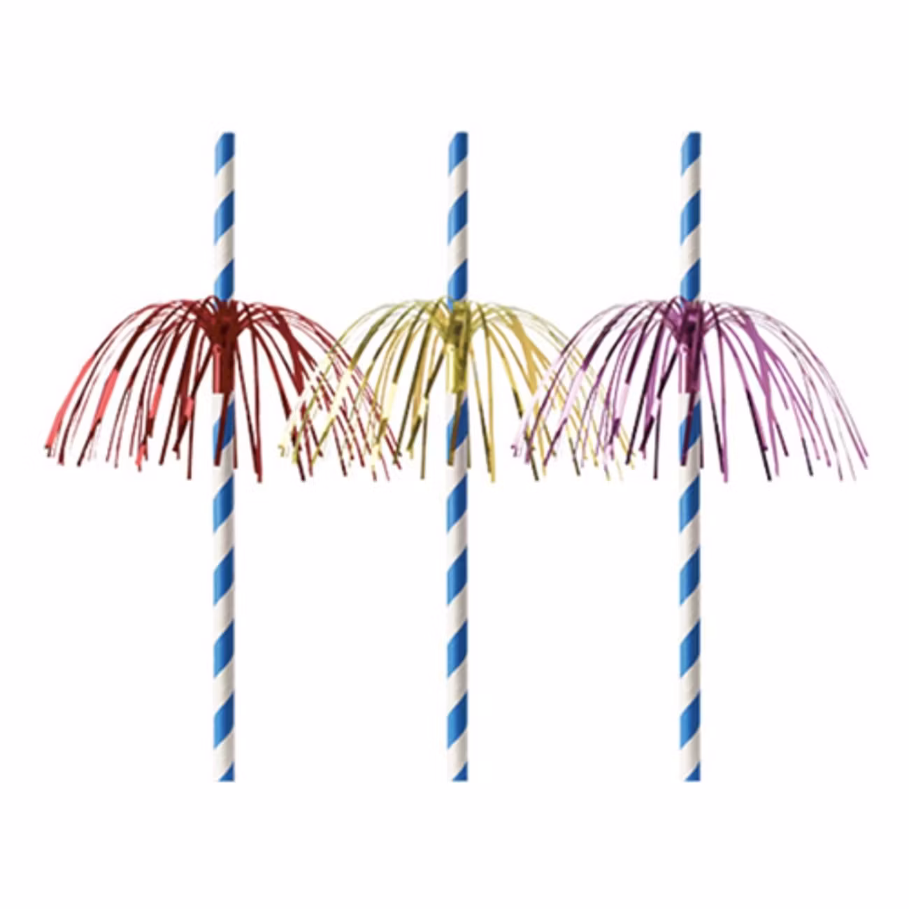 Skapa ett drinkbord fullt med färgglada fyrverkerier! Det är faktiskt inta alls svårt, det enda som behövs är de här roliga sugrören med remsor i olika färger. Blanda till några goda drinkar och sätt ett sugrör i varje glas. Skål! Festliga sugrör uppskattas av både stora och små.