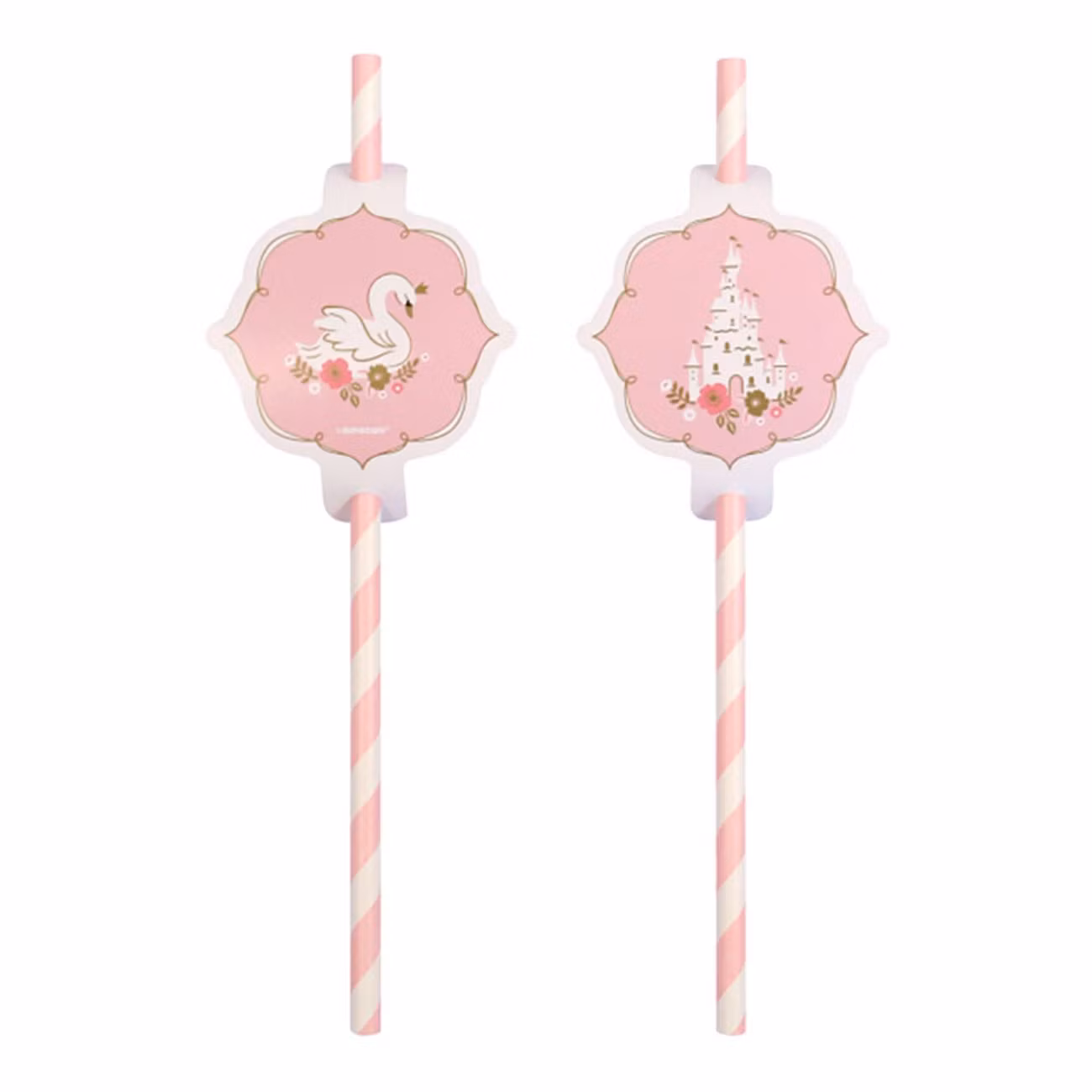 Pappersugrör Princess går i färgerna vit och rosa med motiv av svanar och slott! Sugrören mäter cirka 19,7 cm på längden och kommer passa perfekt till barnkalaset.