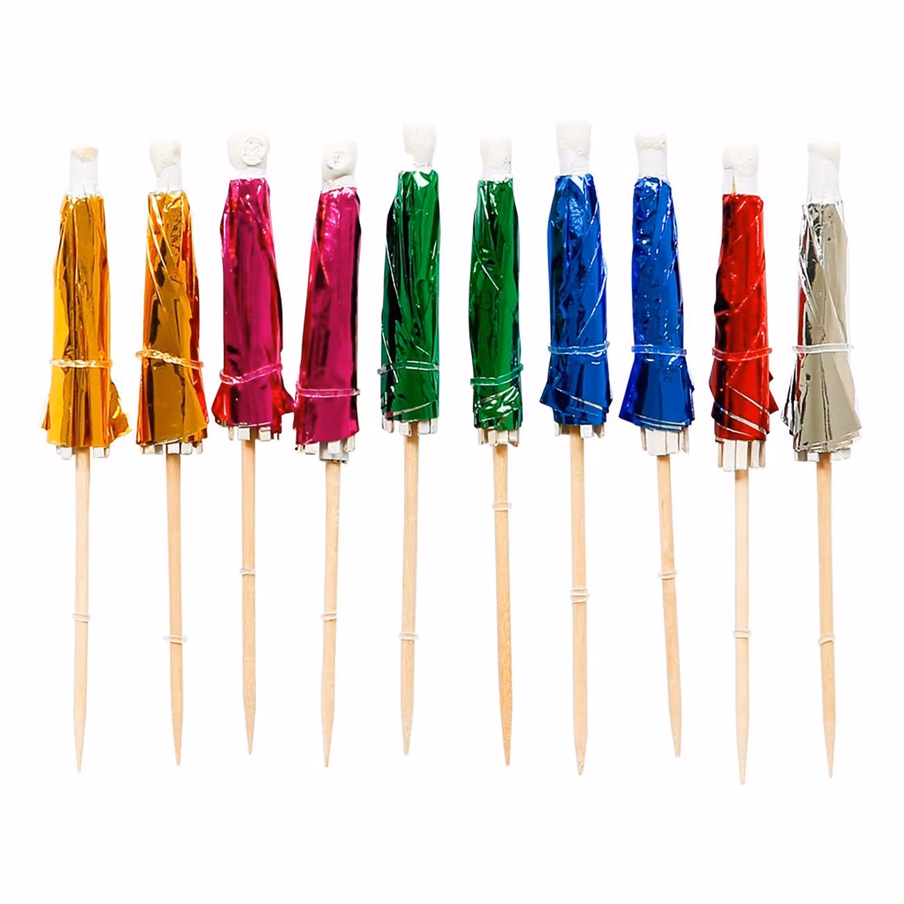 Partypicks Drinkparaply är de perfekta dekorationerna för drinkarna eller i en banana split, parasollerna har mixade färger men alla har en metallic-finish och en träpinne.