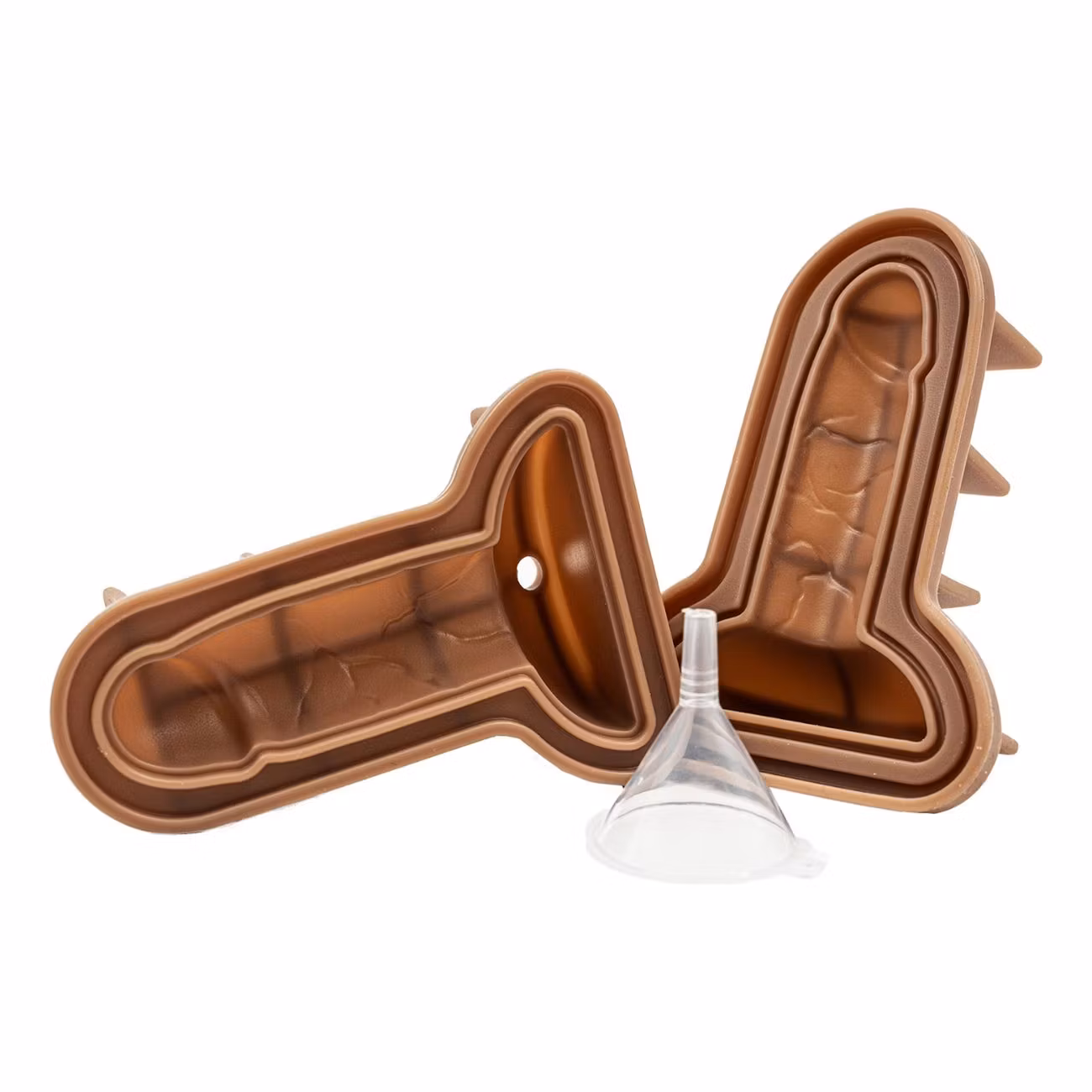 Penis Isform är en brun silikonform som du fyller upp med vatten och lägger i frysen. När vattnet blivit till is kommer den efterlikna en snopp. Rolig att kyla ner drinkarna med på möhippan! Finns i två olika storlekar.