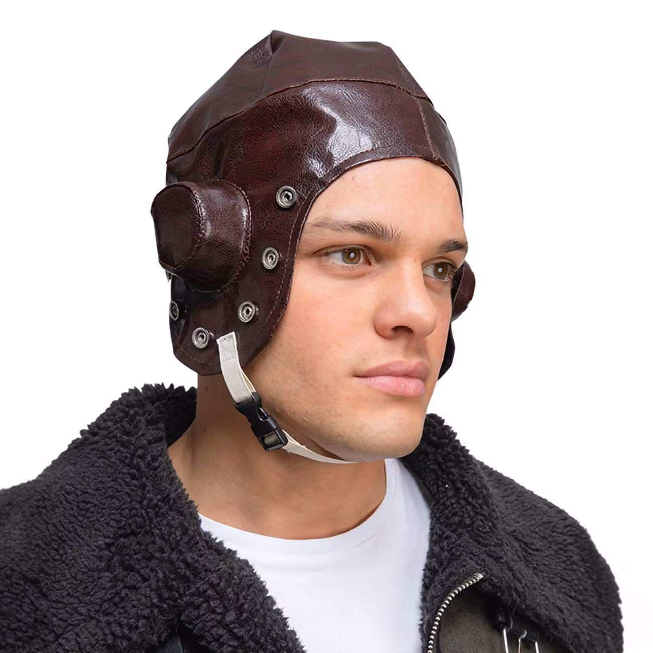 Pilotmössa Brun är en mörkbrun pilotmössa i retro-modell som förvandlar dig till en stridspilot från andra världskriget. Pilotmössan är i fuskläder kommer med ett spänne under hakan som kan justeras i storlek.