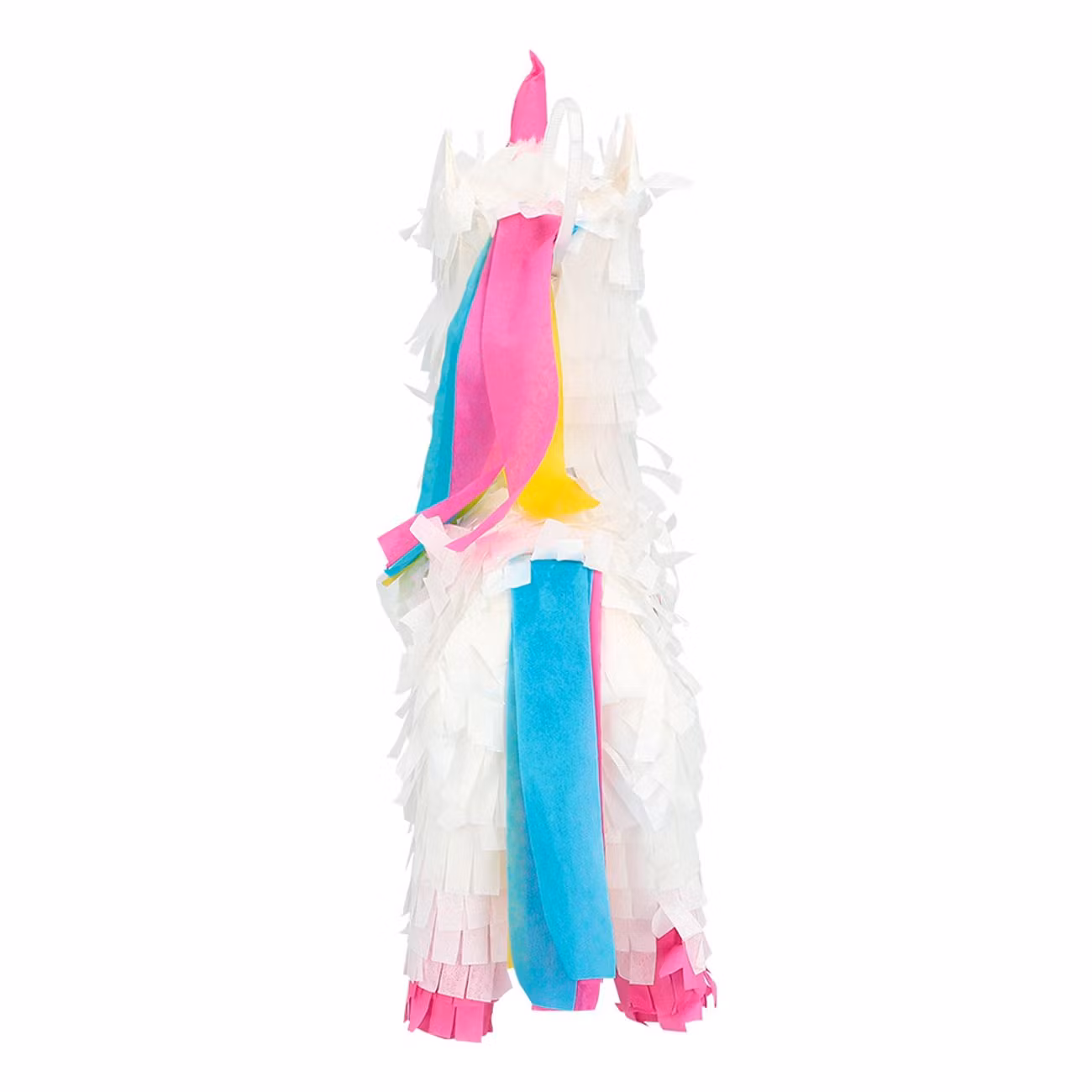 Pinata Enhörning Mini mäter 14 x 5.5 x 17.5 cm och är en mindre variant av en enhörningspinata. Fyll med godis låt sötsakerna regna!