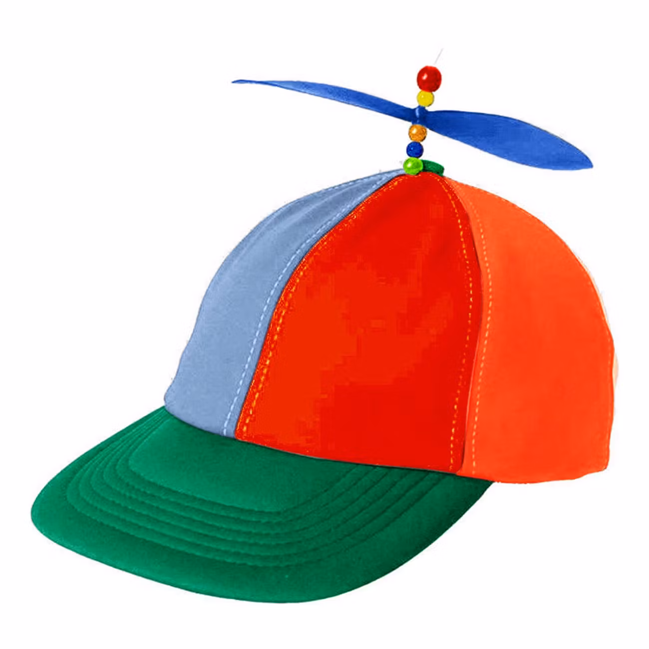 En färgglad klassiker som får smilbanden att snurra i samma takt som propellern! Om du tar bort de blåa vingarna så får du en keps precis som kultikonen Skurt har på sig i det lika kultförklarade barnprogrammet. Kepsen passar både barn och vuxna.