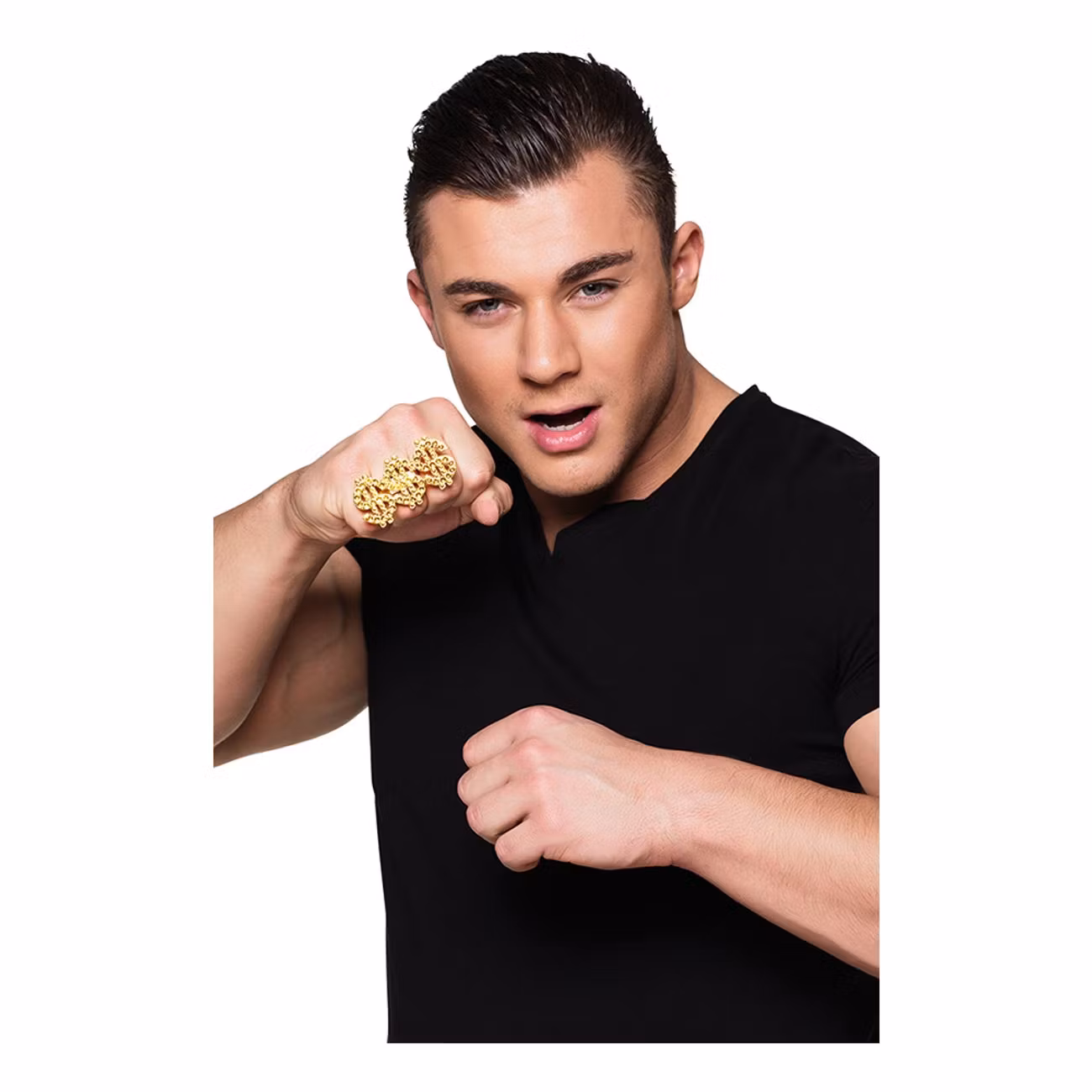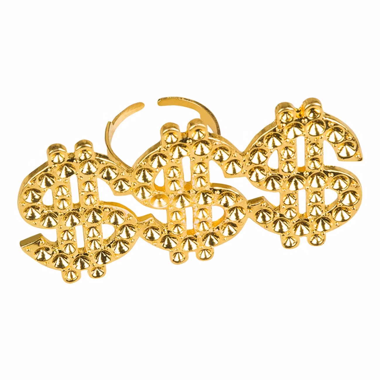 Ring Dollar är tillverkad av metall och har en öppning i själva ringen som gör att den kan anpassas till just ditt fingers storlek.