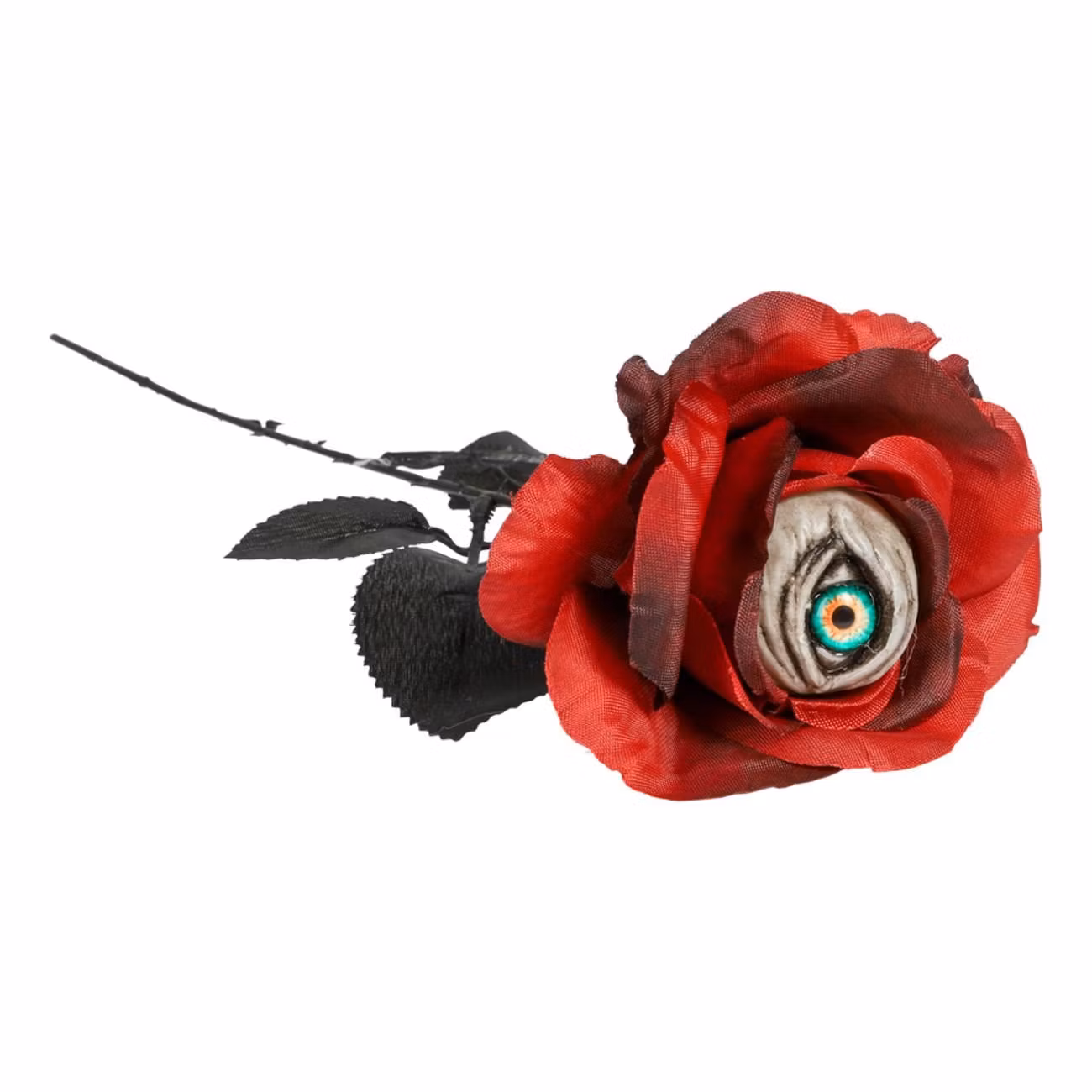 Romantiskt med en skrämmande twist! Denna röda ros ser kanske först ut som en vanlig blomma – men titta närmare och du upptäcker ett öga som stirrar tillbaka. HUA! Perfekt som kuslig accessoar till din halloweendräkt eller varför inte som en effektfull detalj på halloweenbordet!