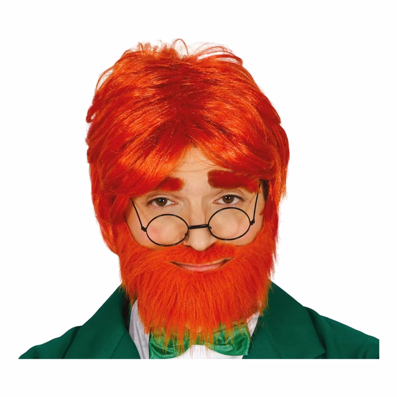Rödhårig Peruk med Skägg är en röd peruk med matchande skägg. Skägget sitter på plats med hjälp av elastiskt band bakom ditt huvud och har en öppning för munnen. Passar perfekt till festen med landstema och halloweenfesten - eller när du bara vill prova på att ha rött hår!