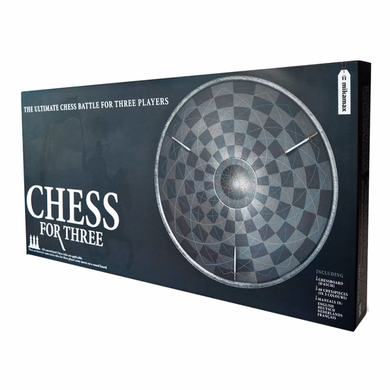 Schack För Tre är precis som det traditionella schackspelet, fast med en rund spelplan där inte två, utan tre personer kan spela samtidigt. Spelreglerna fungerar precis som vanligt och spelpjäserna kommer även i en grå färg utöver de vita och svarta. Själva spelplanen är väldigt dekorativ och har ett häftigt utseende vilket gör att du kan använda spelet som en dekoration i exempelvis bokhyllan eller vitrinskåpet när det ej används.