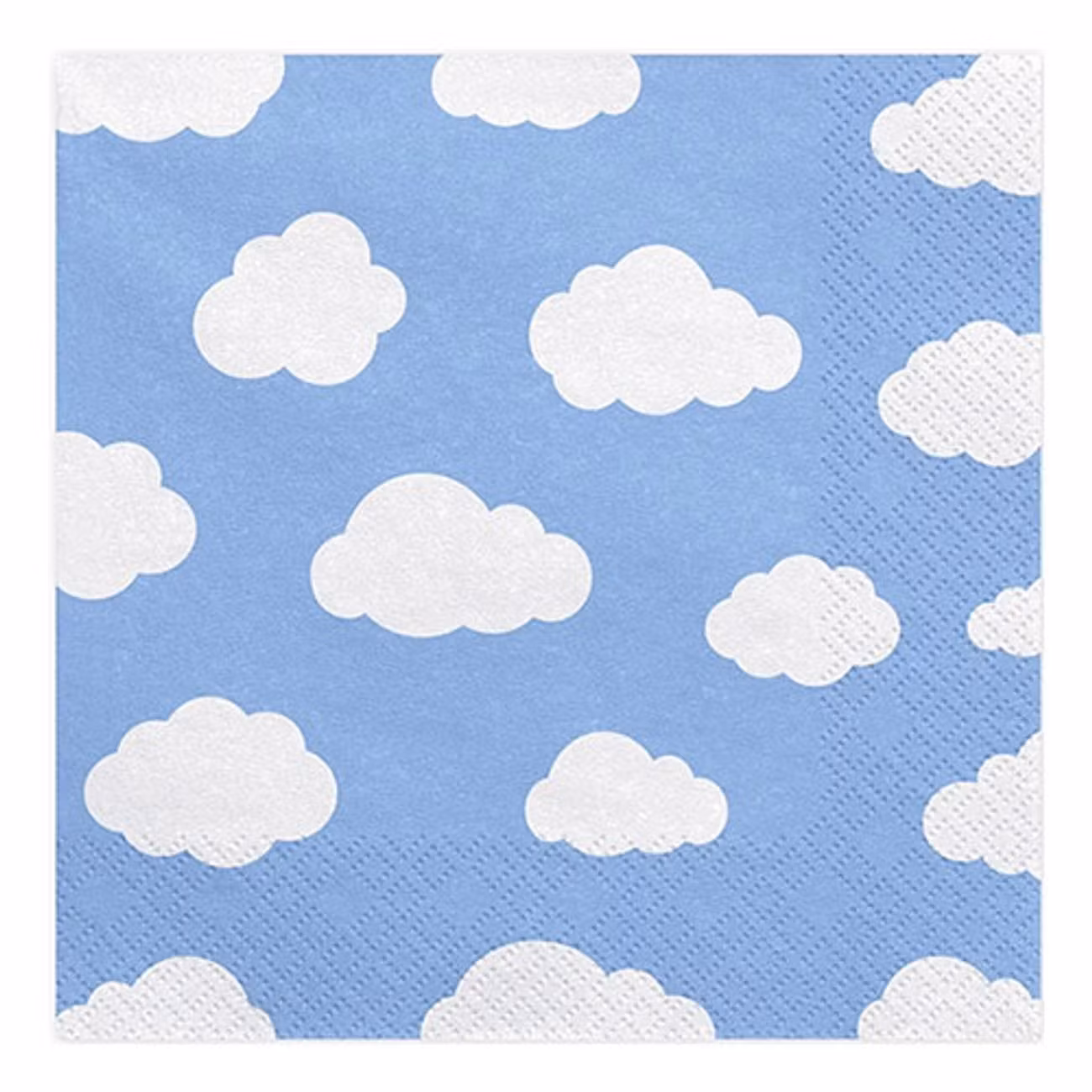 Superfina och söta servetter! Den blå färgen är riktigt snygg och de vita molnen är helt perfekta. Bjud in till kalas och duka festbordet med dessa servetter. De passar bra till ett födelsedagskalas, en babyshower eller ett dop. De passar också bra om du har ett tema på festen, till exempel Little plane.