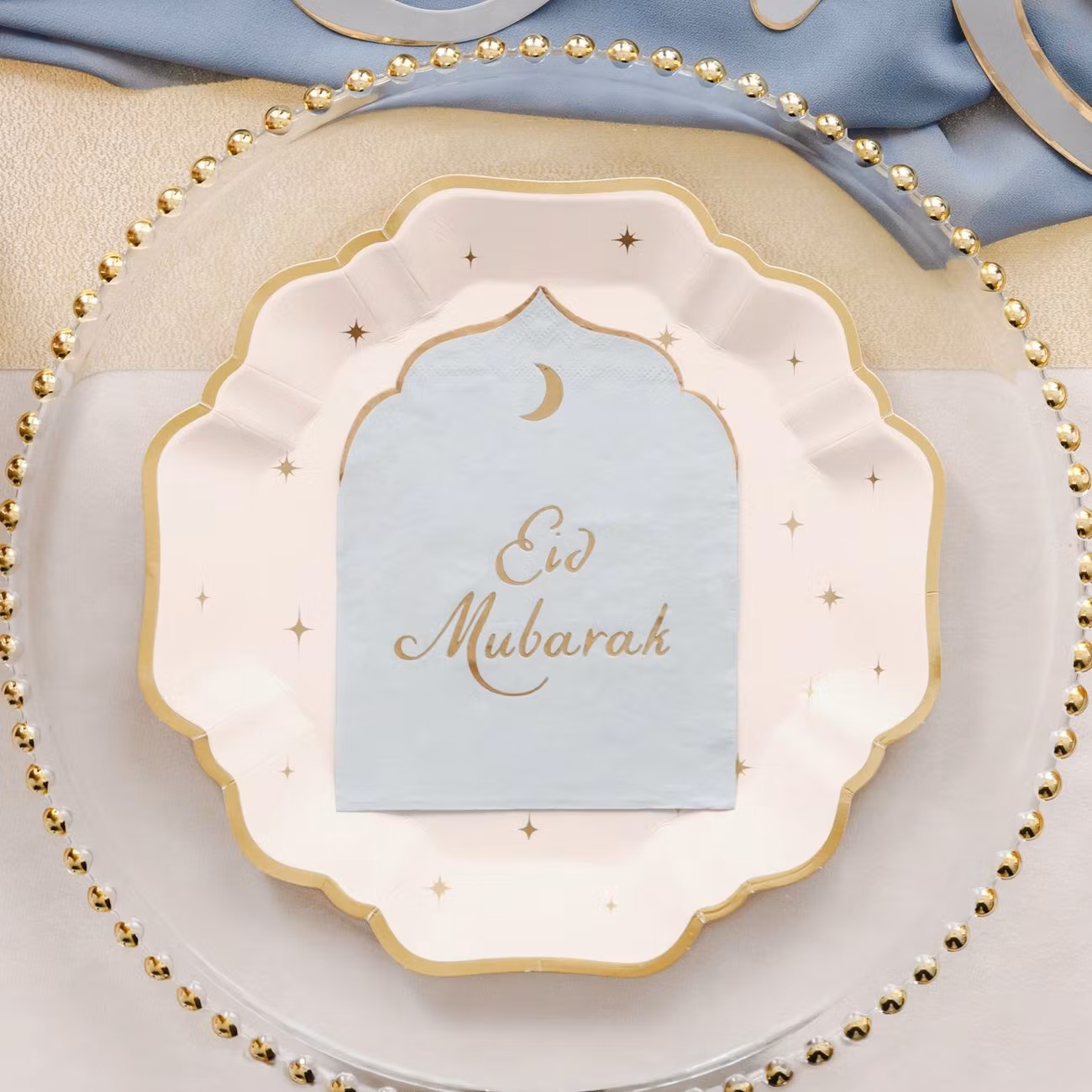 Oavsett om du dukar upp för en stor fest eller en mysig familjemiddag, är dessa servetter både praktiska och dekorativa. Enkla att matcha med andra festtillbehör och perfekta för att skapa en harmonisk och festlig atmosfär. Gör din Eid extra speciell med dessa fina servetter!