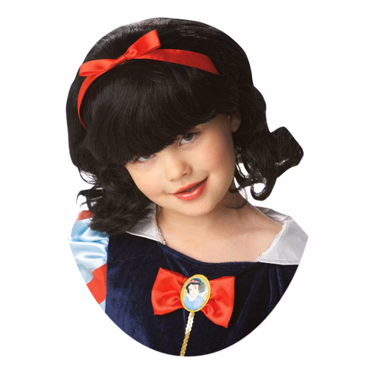 Din lilla flicka kommer att vara den skönaste av dem alla med denna officiellt licensierade Disney Snövit peruk! Peruken är svart och har en röd rosett, precis som i sagan. One size (barnstorlek).