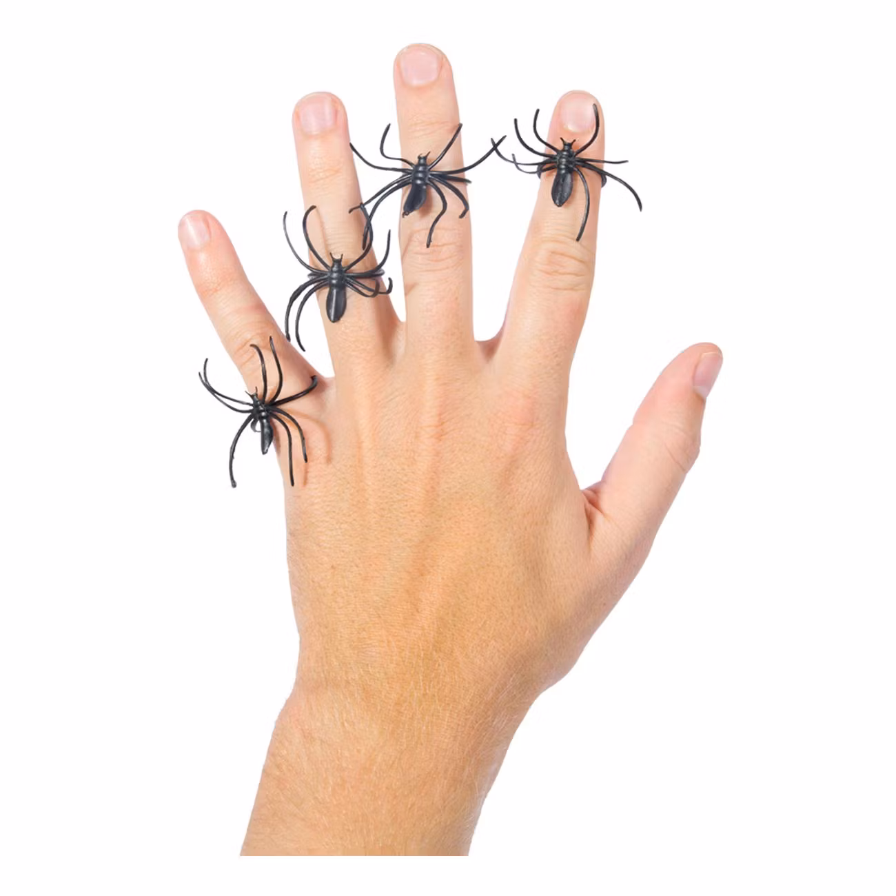 Det är ofta detaljerna som gör din maskeraddräkt till den mest omtalade på hela festen. En snygg kostym är enkelt att få tag på, men att matcha den med rätt accessoarer och tillbehör för att lyfta din karaktär är inte lika enkelt. De här ringarna med spindlar på är ett perfekt alternativ för dig som söker efter den där klockrena detaljen till din halloweenkostym. Den är svart, spretig och hemskt läskig för den som skyr spindlar.