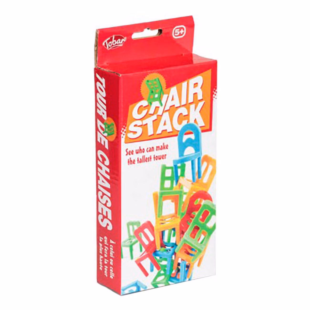 Ett roligt sällskapsspel är lika kul på kompisfesten som under familjemiddagen – och detta utmanade stolspel är inget undantag. Här krävs det goda fingerfärdigheter och försiktighet för att stoltornet inte ska välta när du ska försöka sätta nästa stol på höjden!