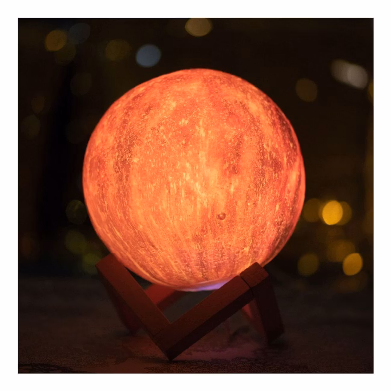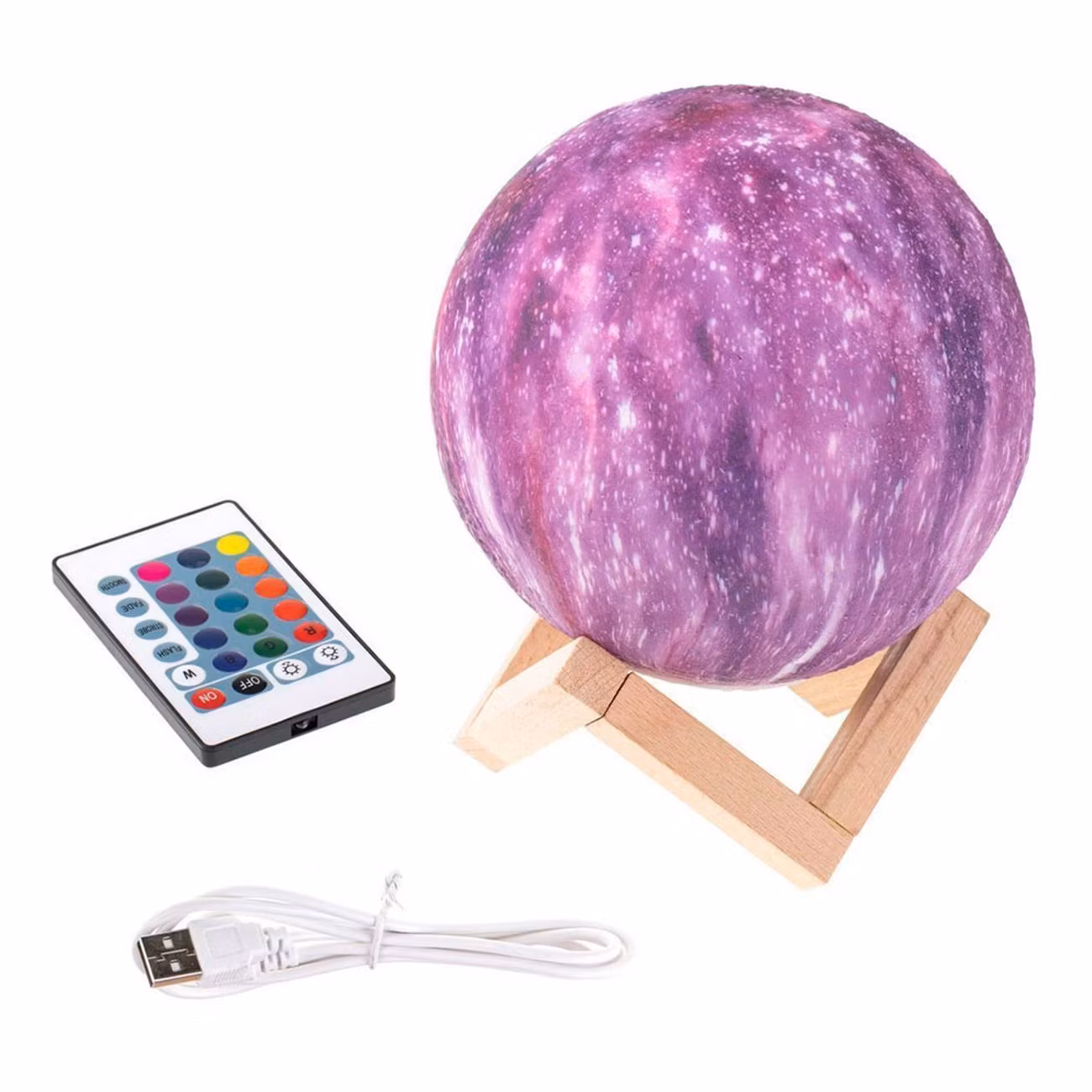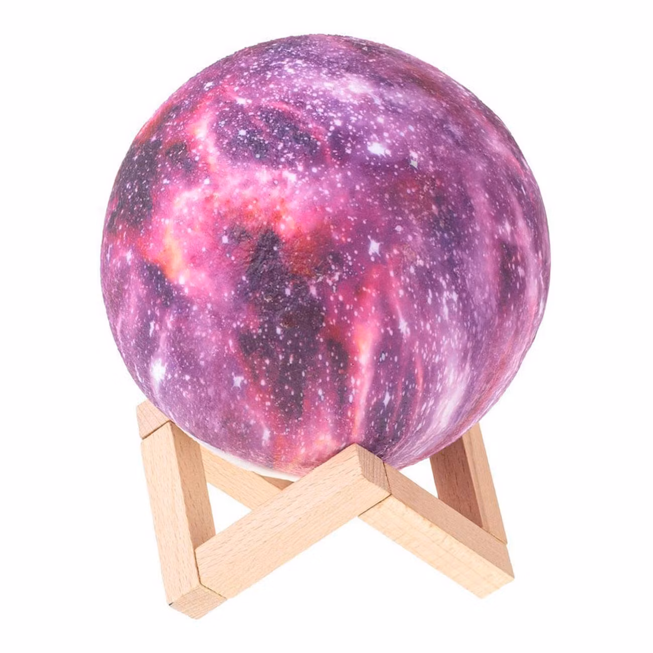 Stjärnlampa 3D är en mysig nattlampa för såväl sovrummet som vardagsrummet. Använd den medföljande USB-kabeln för att förse lampan med ström, eller ladda upp lampan och använd den trådlöst. Med lampan medföljer även ett ställ i trä, varpå stället och lampan är separata och behöver alltså inte användas ihop. Lampans färger och ljus ändras enkelt genom touchkontroll eller med den medföljande fjärrkontrollen.