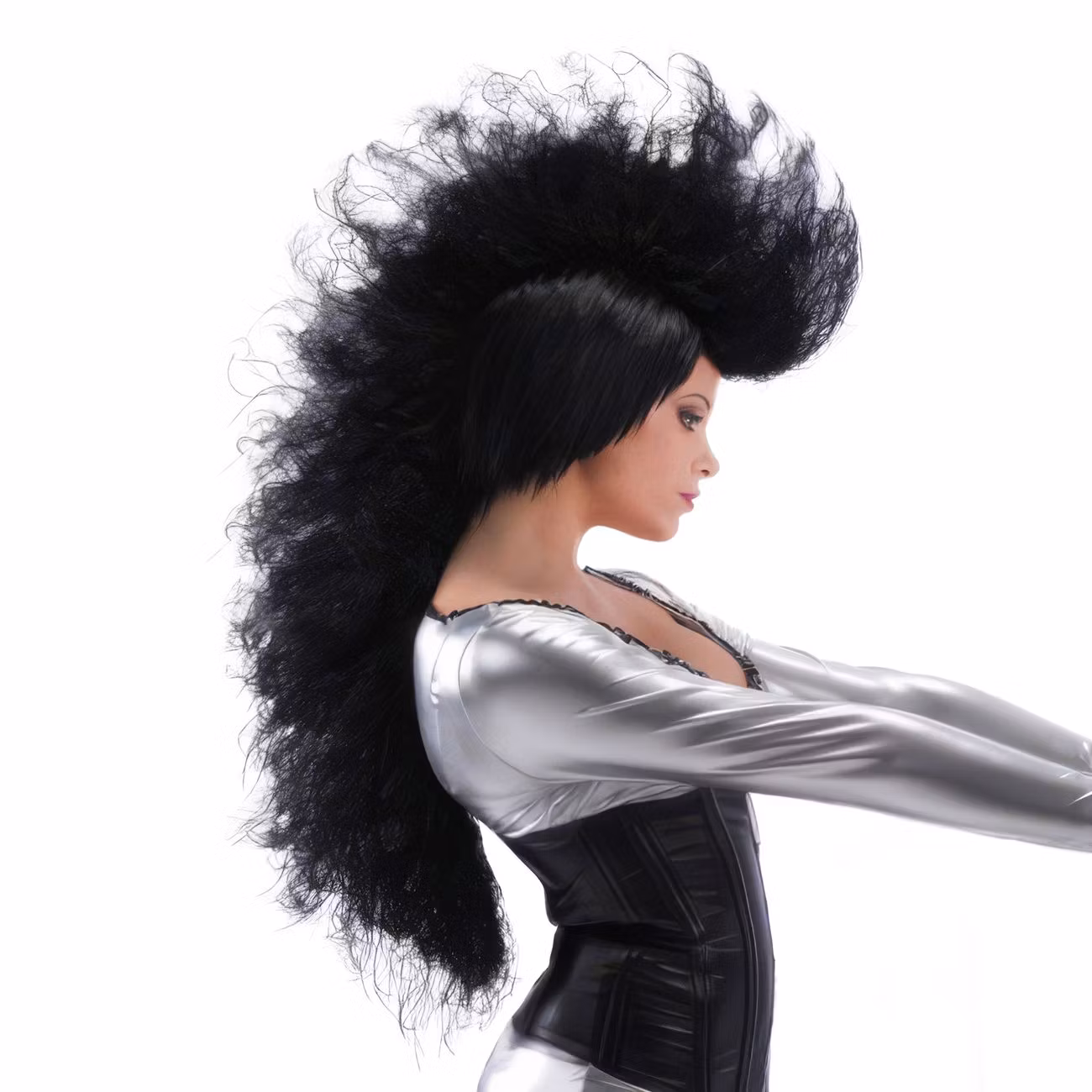 Oavsett om du rockar den på en konsert, en temafest eller bara för att krydda till vardagen, kommer denna stora svarta punk peruk att ge dig den perfekta dosen av attityd och rebellisk känsla. Dina vänner kommer garanterat att tycka att du gör succé med din nya frisyr!