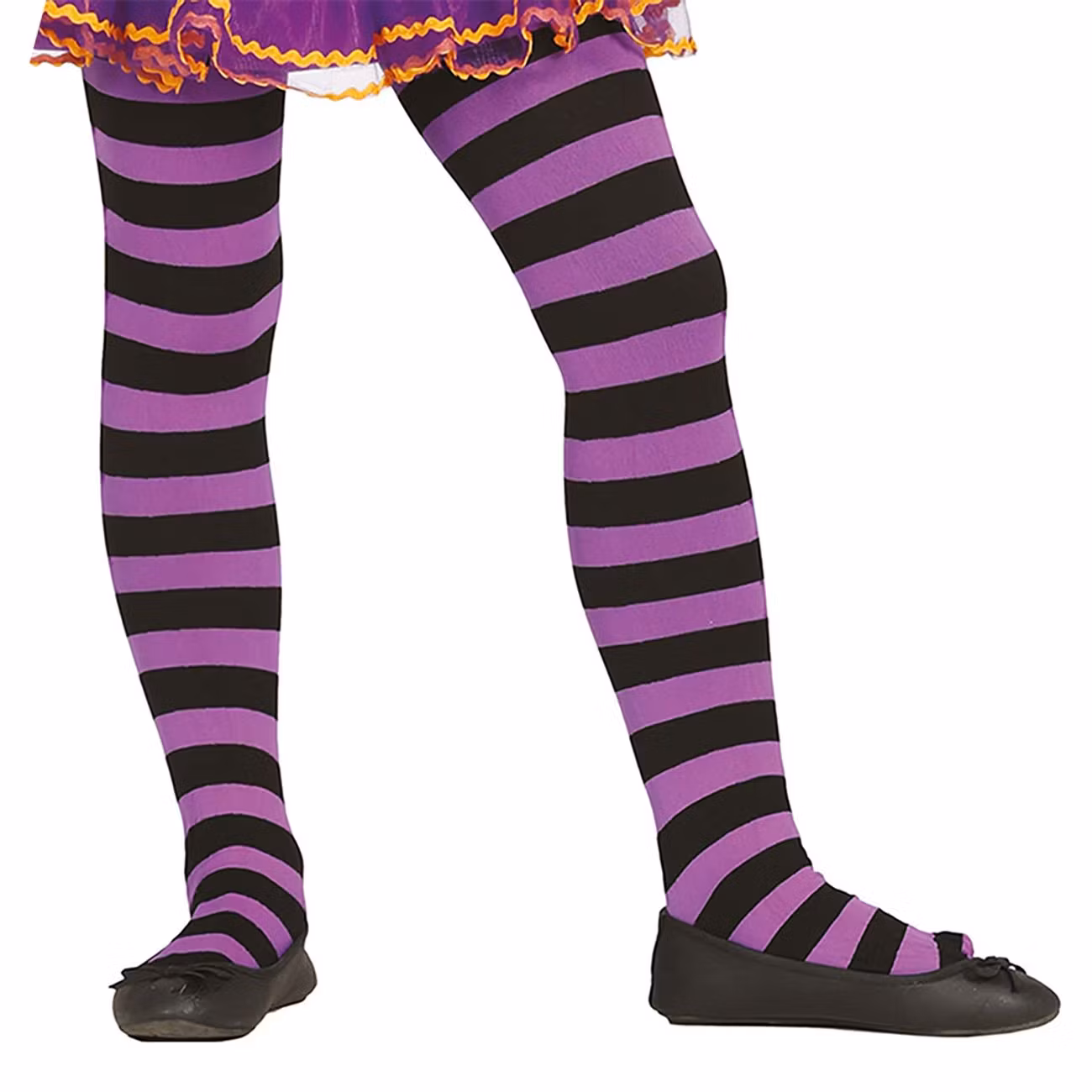 Strumpbyxor för Barn Svart/Lila Randiga är randiga strumpbyxor som kommer i en stretchig modell som passar barn mellan åldrarna sju till tolv. Perfekt till Halloween när barnet skall klä ut sig till exempelvis en häxa eller liknande!