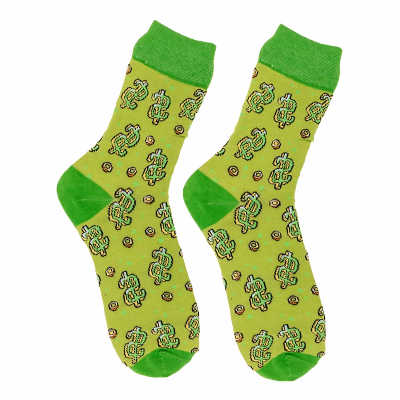 Strumpor Dollar är ett par gröna, bekväma och stretchiga strumpor som kommer med motiv föreställande dollartecken och mynt. Perfekt som present till någon som jagar storkovan eller att använda till exempelvis pokerkvällen!
