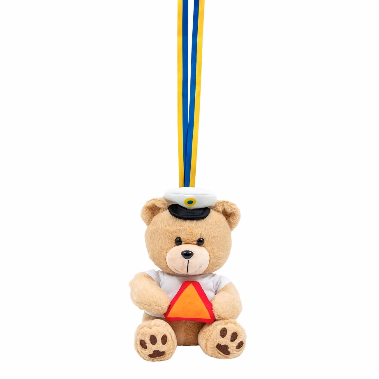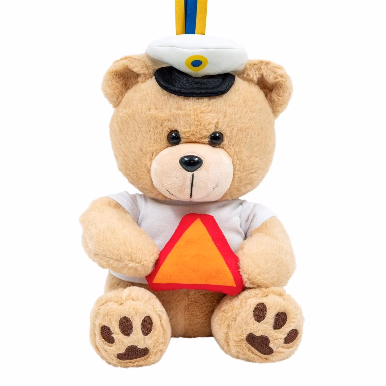 Studentnalle LGF-Skylt är en mjuk plyschnalle med studenthatt som håller i en LGF-skylt. Nallen sitter fast i ett blå/gult band som förslagsvis kan hängas runt halsen.