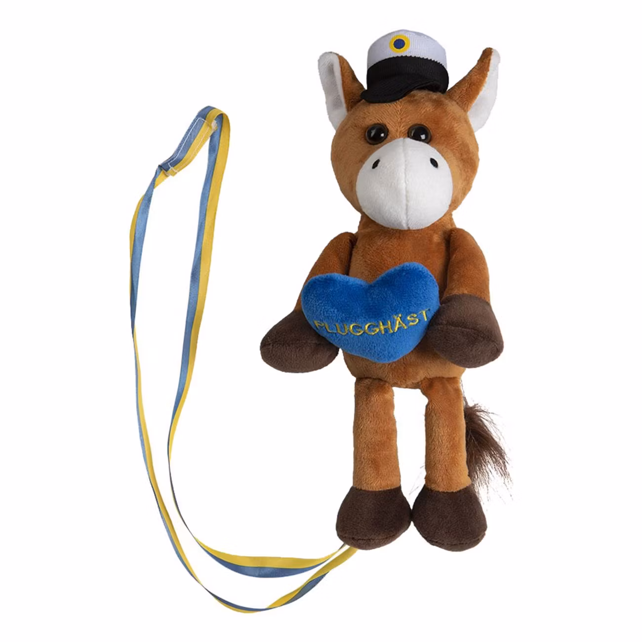 Studentnalle Plugghäst med Hjärta är en brun nalle som ser ut som en häst med en studentmössa på huvudet och ett blått hjärta i handen. På hjärtat står det "Plugghäst". På nallen finns ett gult och blått band så att du kan hänga den runt studentens hals. Nallen är tillverkad i polyester och är 10 cm stor.