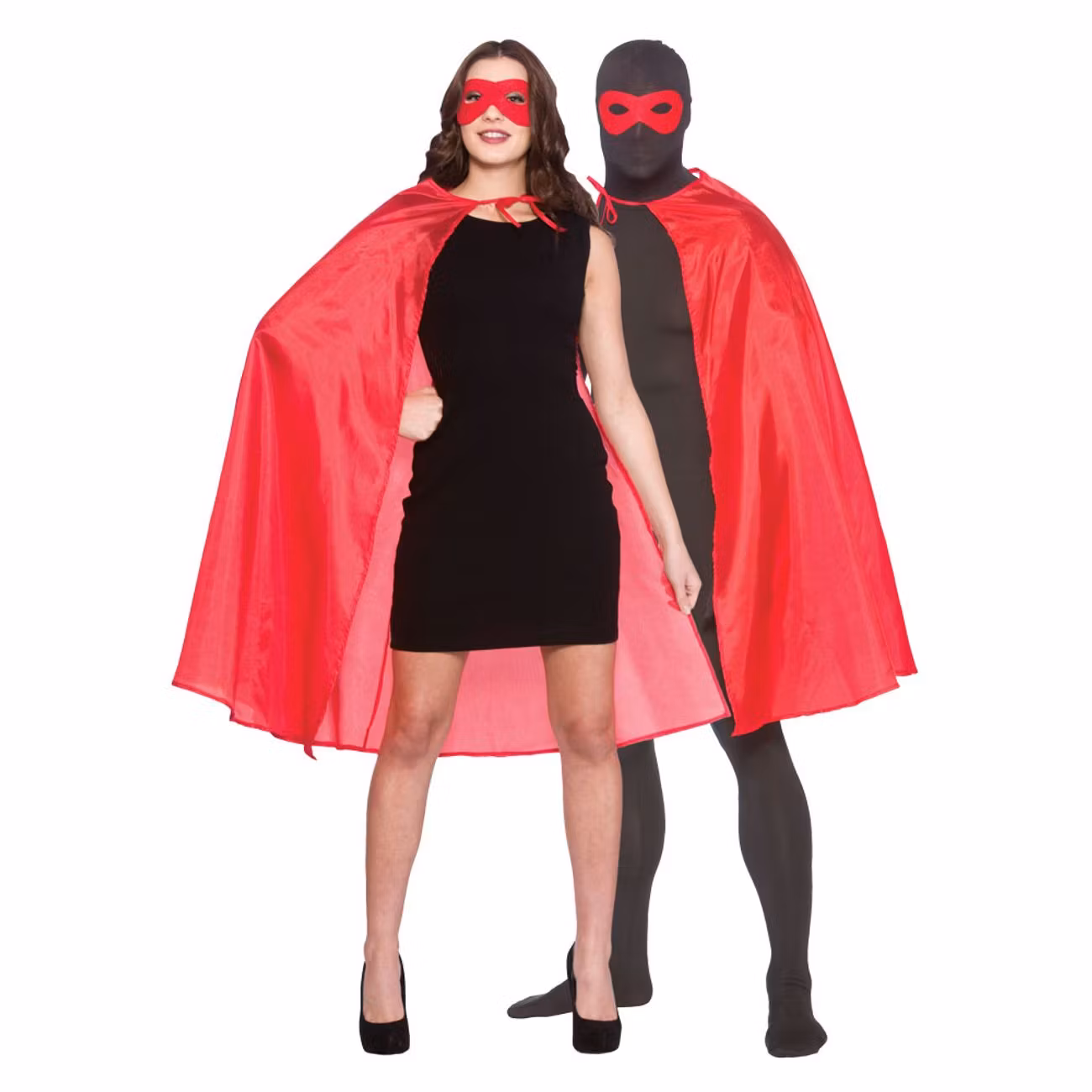 Superhjälte Röd Tillbehörskit inkluderar en röd ögonmask som du enkelt knyter runt huvudet samt en matchande röd cape som du knyter runt axlarna så att den fladdrar snyggt i vinden när du skrider fram på gator och torg. Klänning och skor ingår ej.