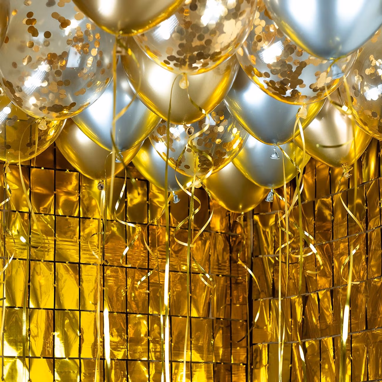 För att skapa en fest i tvättäkta glitter & glamour-anda så gäller det att fylla lokalen med skimrande pynt från golv till tak. Använd dessa festliga takballonger för att sätta guldkant på ditt nästa glam party!