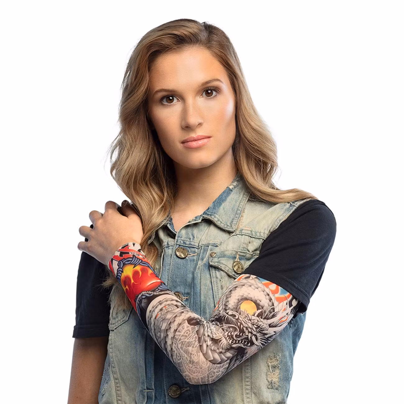Glöm läskiga nålar i skumma tatueringsstudios, nu kan du enkelt fylla hela armen med bläck genom att dra på dig en livfull ärm istället! Den här varianten pryds av mytomspunna drakar och är tuffare än tuff!