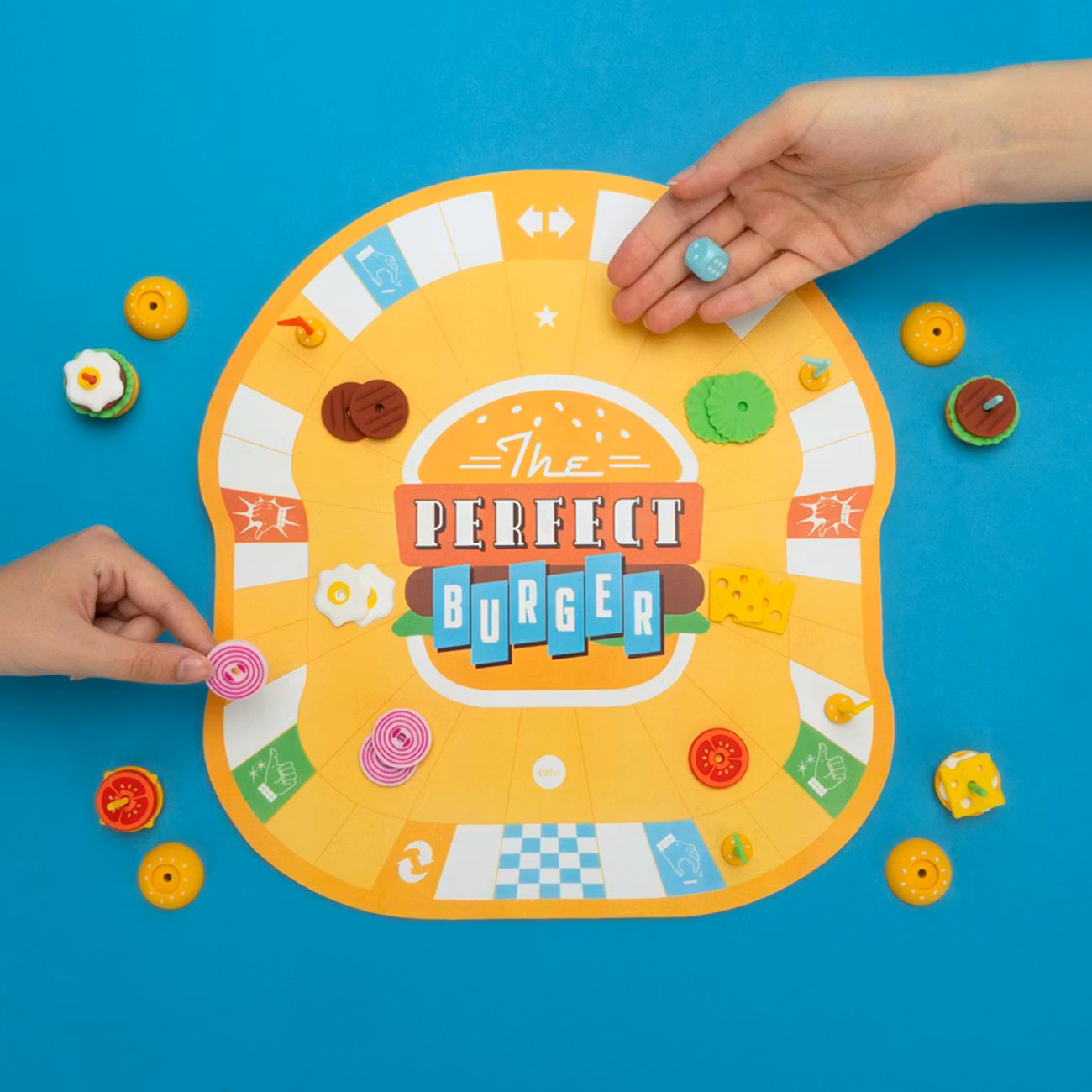 The Perfect Burger Brädspel är ett kul och simpelt sällskapsspel som går ut på att skapa den burgaren. Slå tärningen, samla ingredienserna och ska den bästa hamburgaren någonsin!