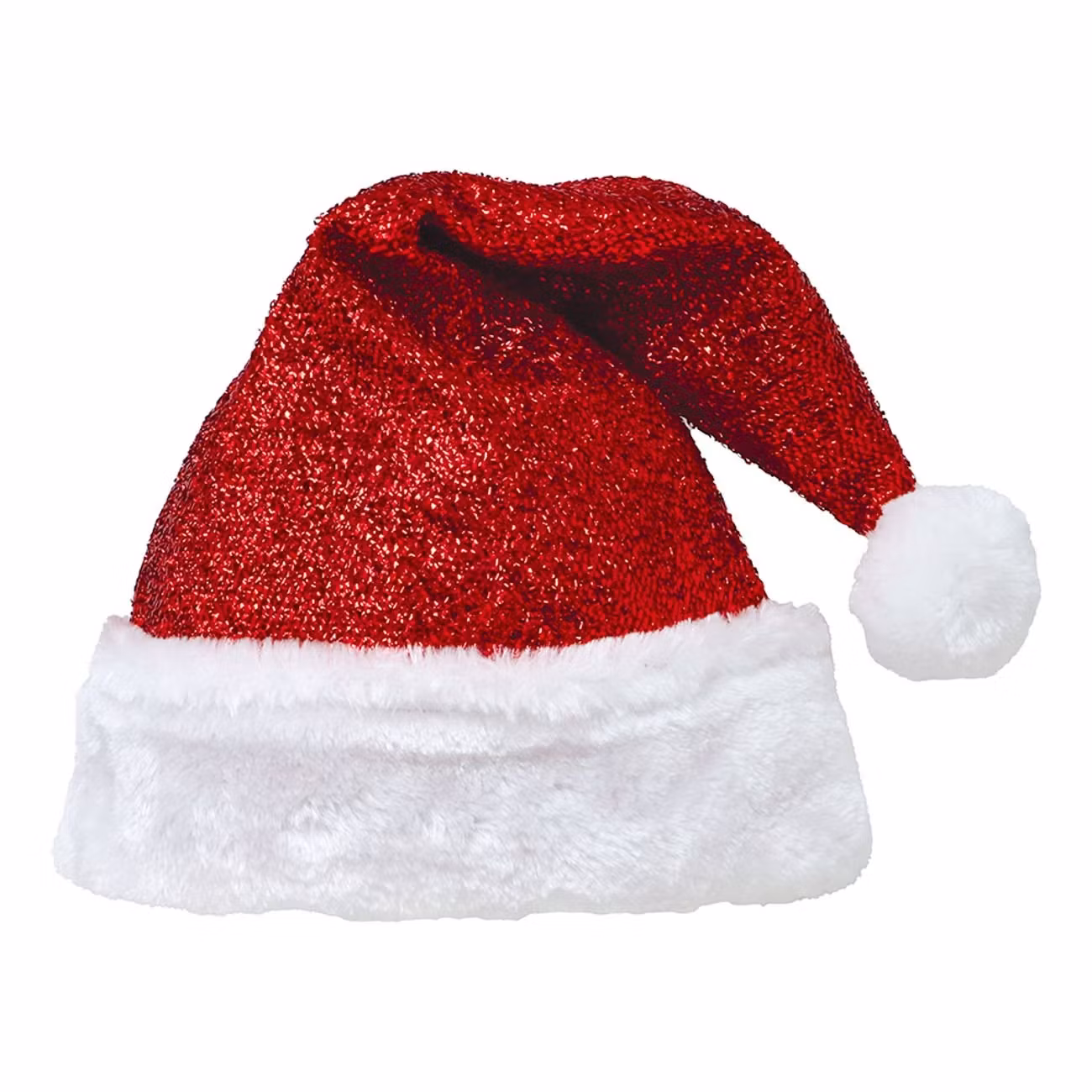 Tomteluva Glittrig Deluxe är tillverkad i ett skimrande rött tyg täckt av glitter som fångar ljuset från alla håll, perfekt för julfester och mysiga adventskvällar. Luvan är kantad med en fluffig vit fuskpäls och pryds av en rund vit boll i toppen – precis som en traditionell tomteluva ska vara.
