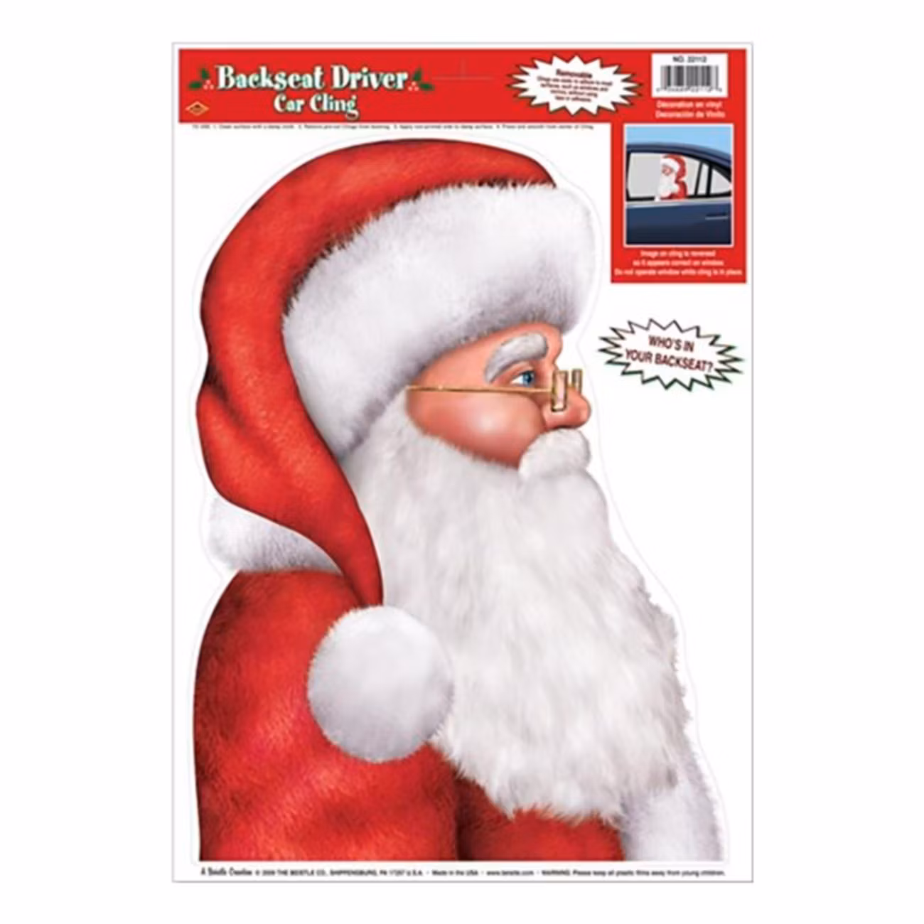 Tomten Bildekoration är en rolig plastdekoration som du enkelt fäster på bilrutans insida så att det ser ut som om du har självaste tomtefar i baksätet på bilen.