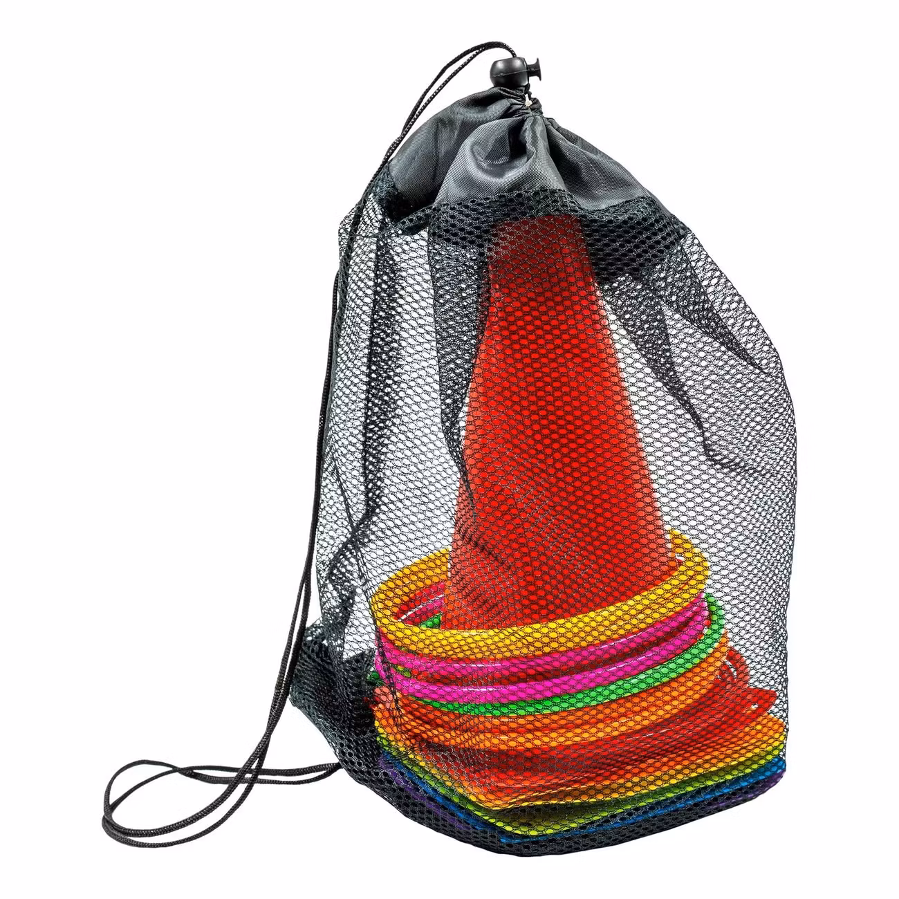 Trädgårdsspel Kit innehåller koner i olika färger, ärtpåsar och ringar. Det perfekta kitet till midsommar när det vankas 3-kamp!