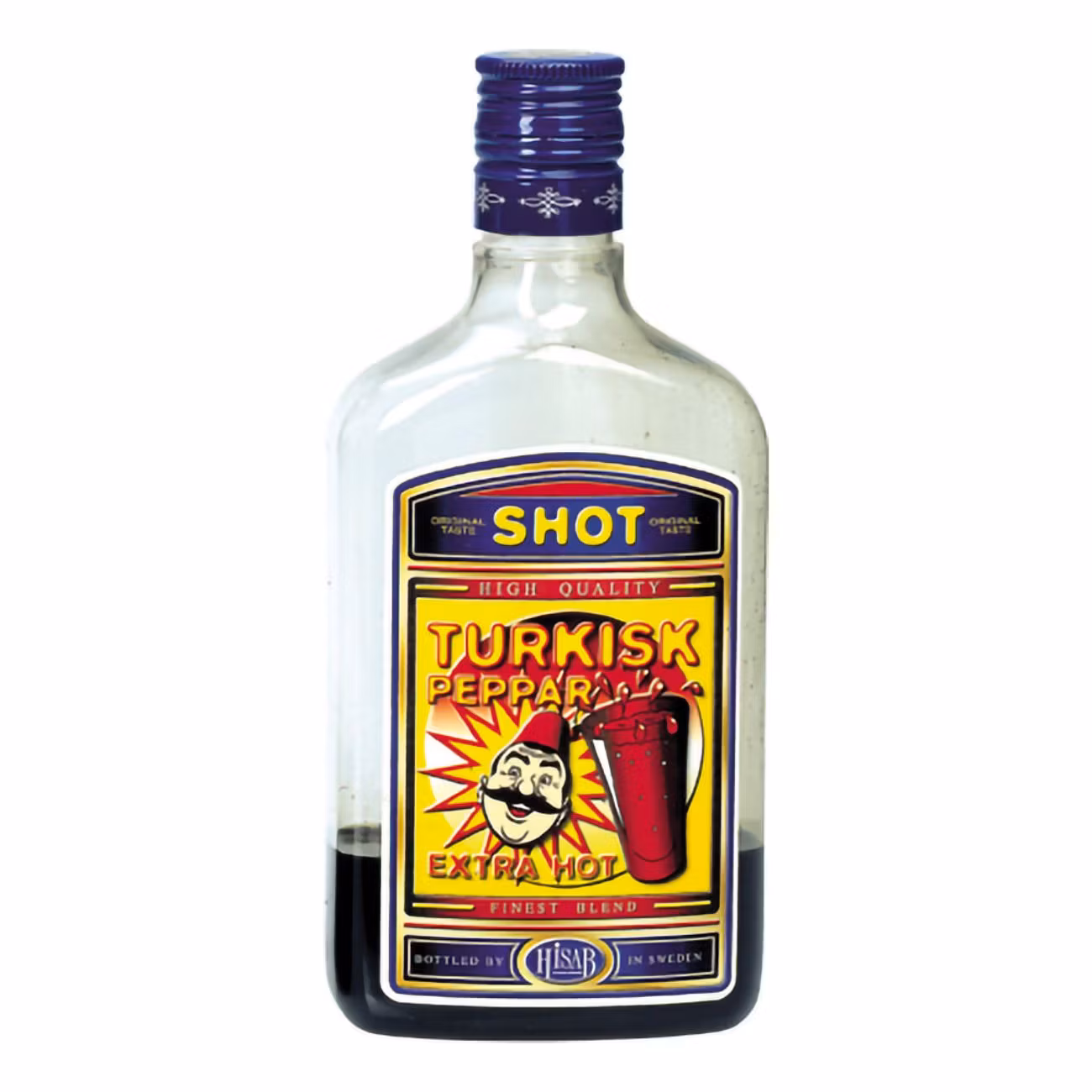 Fill-up flaska av plast. Flaskan kommer fylld med rätt mängd essens, tillsätt 40-50%:ig sprit tills dess att den är full. Ger 50 cl färdig blandning. Lagring förhöjer smaken. Serveras i shotglas.