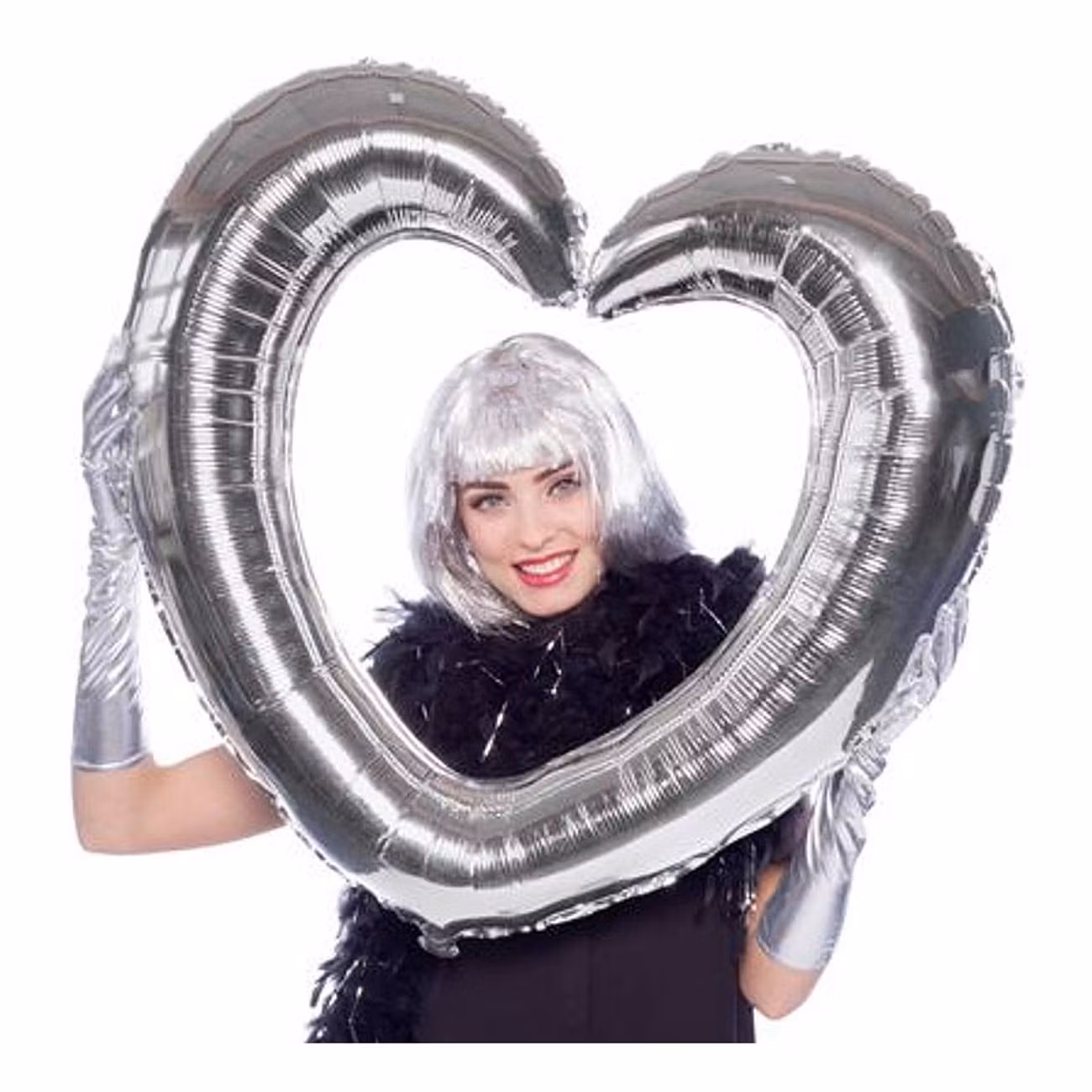 Uppblåsbar Selfieram Hjärta Silver är en folieballong i form av ett silverfärgat skimrande hjärta.