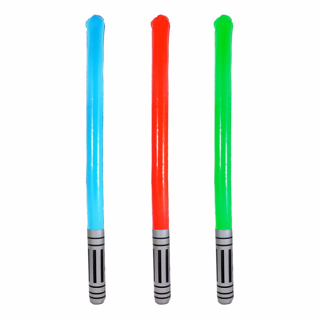 Uppblåsbart Lasersvärd mäter ca 90 cm lång uppblåst och finns bland annat i färgerna blå, röd och grön.