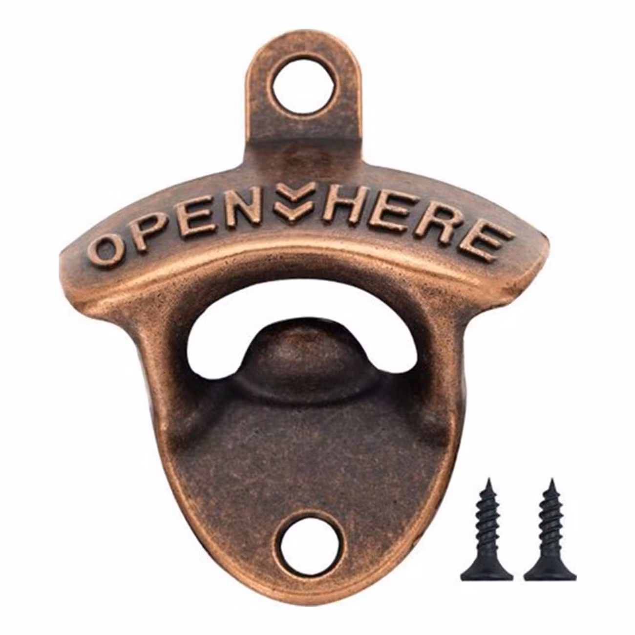 Väggmonterad Kapsylöppnare Open Here är en snygg och smidig kapsylöppnare som du enkelt skruvar fast på lämplig vägg. På öppnaren står det "Open Here". Det följer med 2 stycken skruvar för smidig upphängning.