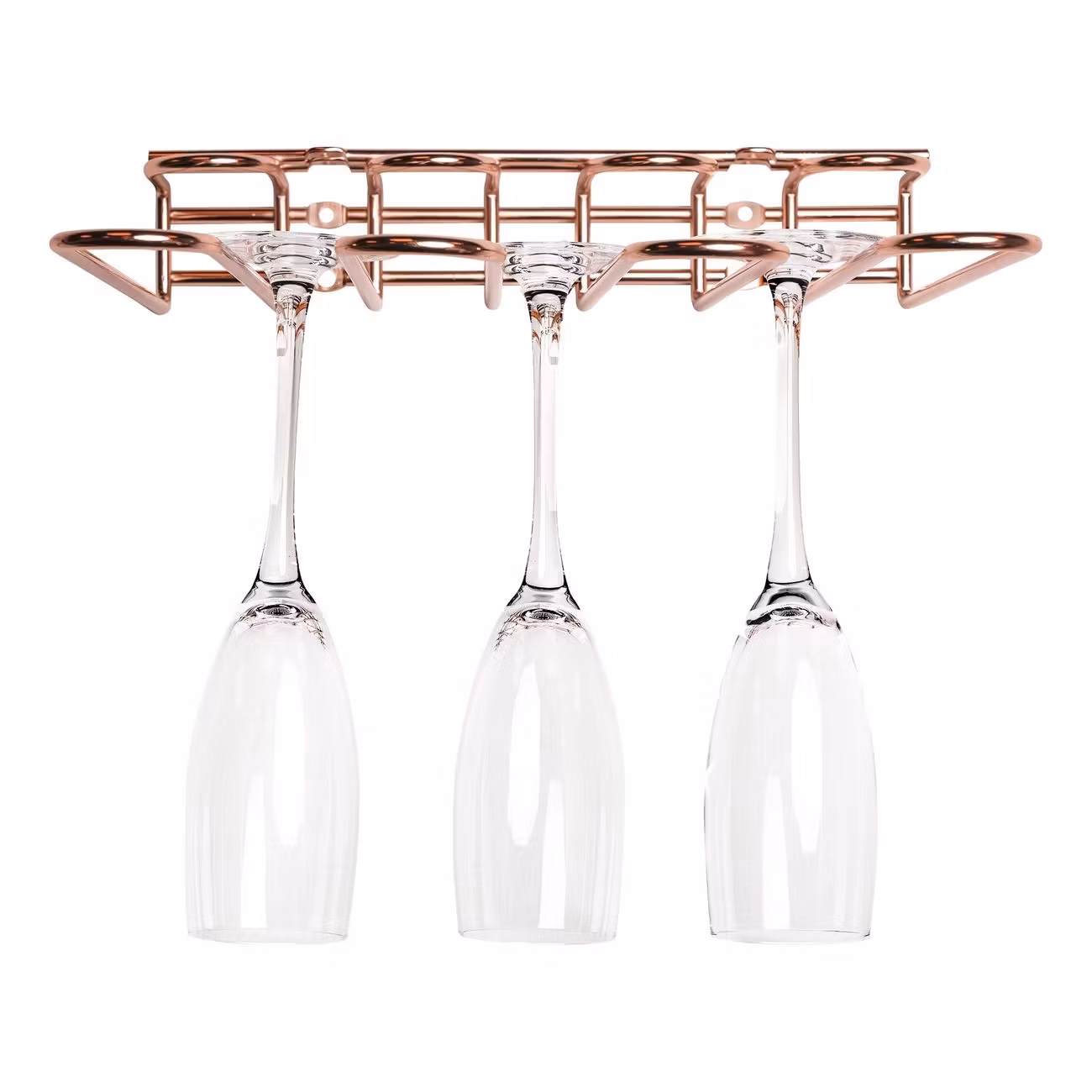 Väggmonterat Vinglasrack Roséguld är en snygg ställning för dina vinglas! Fäst den under en hylla eller direkt på väggen för att få en snygg look i ditt hem.