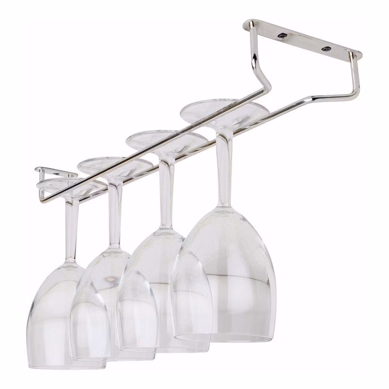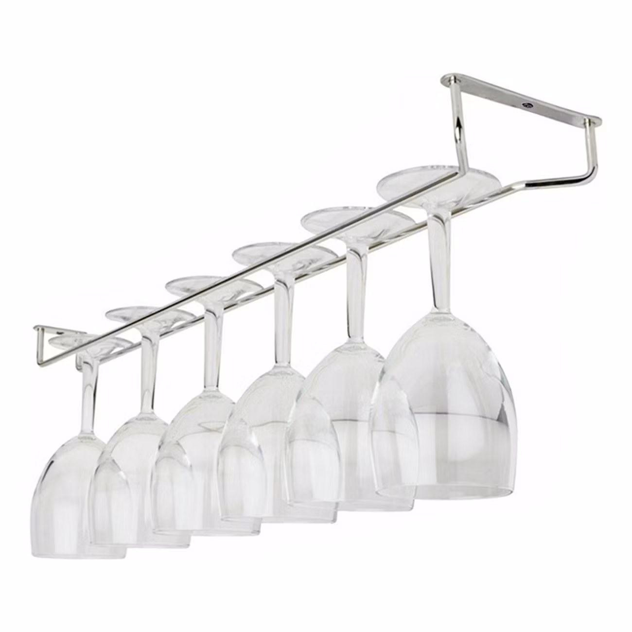 Maximera utrymmet bakom baren med våra krompläterade vinglasrack, som erbjuder säker och praktisk förvaring för dina glas. Idealisk för hemmabarer, pubar och restauranger, kan detta rack monteras över huvudet eller under bar hyllor för snabb åtkomst till glas. Glas som har en fot som är högst 80 mm passar i detta rack.