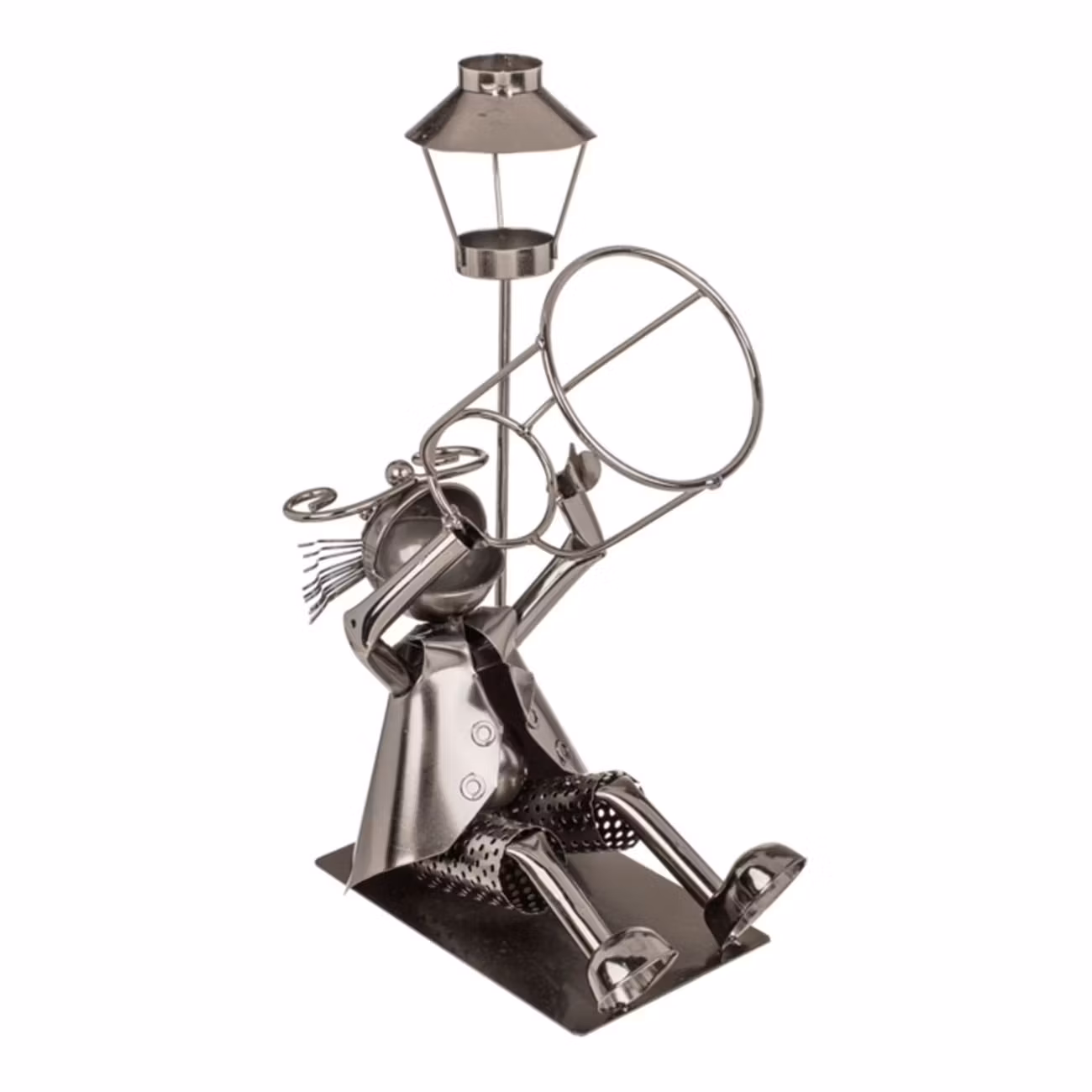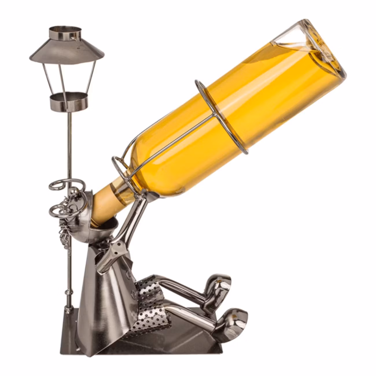 Vinhållare i Metall Drickande Figur är en kul flaskhållare i form av en figur som ser ut att dricka ur flaskan. Vinhållaren har plats för en normalstor vinflaska och står stadigt på bordet tack vare plattan som figuren sitter på.