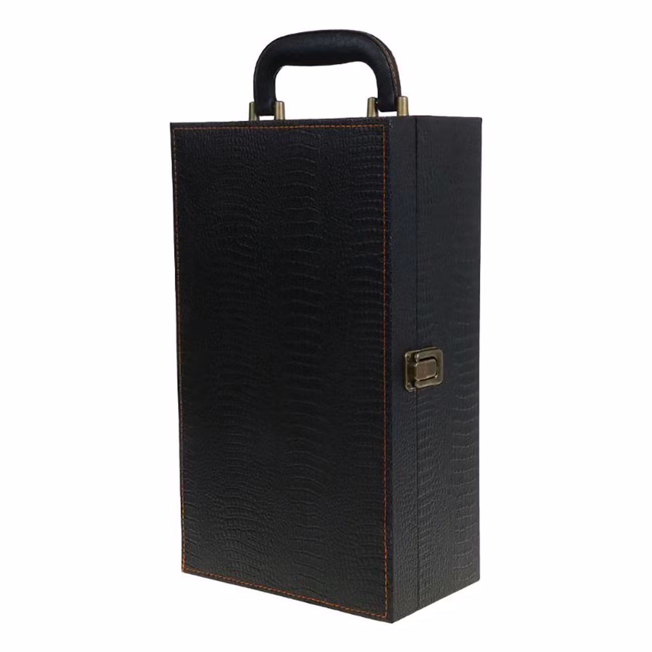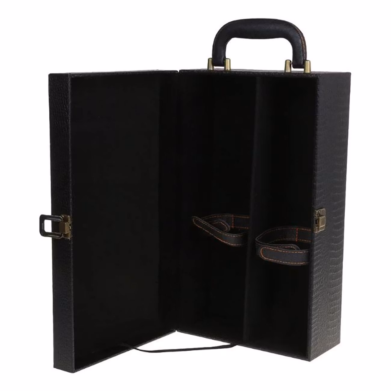 Vinlåda i Läder Presentset är en lyxig låda att förvara vinflaskor och tillbehör i. Lådan är tillverkad i trä, klädd i högkvalitativt konstläder och kommer plats för två stycken normalstora vinflaskor, med extra utrymmen för tillbehör såsom vinöppnare, folieskärare, korkskruv etc (medföljer). Passar utmärkt som en elegant förpackning att ge bort flaskor i – eller som en lyxig förvaring av dina egna flaskor!