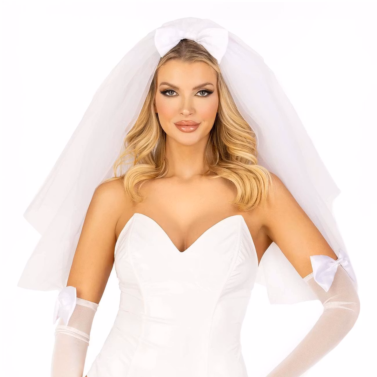Vit Brudslöja är en vit slöja med rosett på som passar utmärkt som accessoar till din dräkt när du skall klä ut dig till halloween, vill ha en finare slöja till möhippan eller söker något unikt till budgetbröllopet.