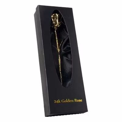 Gulddoppad Ros är en äkta, handplockad ros som doppats i äkta 24 karat guld, den tar några dagar att tillverka men håller sedan sin naturliga skönhet, form och lyster för evigt. Levereras i en snygg svart eller röd presentask.