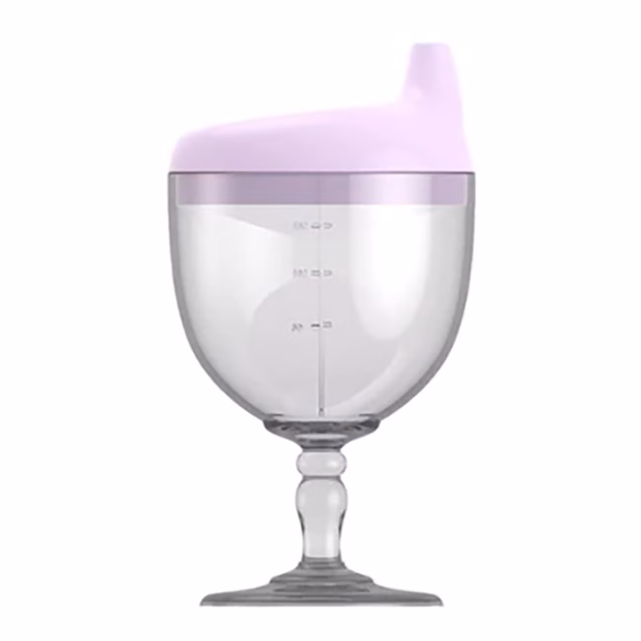 Nappflaska Vinglas för Vuxna är en babyflaska i design av ett vinglas. Locket är designat för att vara läckagesäkert och pipen är bettresistent. Flaskan rymmer 150 ml och mäter ca 14 x 7,7 cm. Tillverkad av PP-material som är smaklöst, giftfritt och tåligt. Kommer i färgerna rosa, blå, lila och gul. Säljs styckvis.