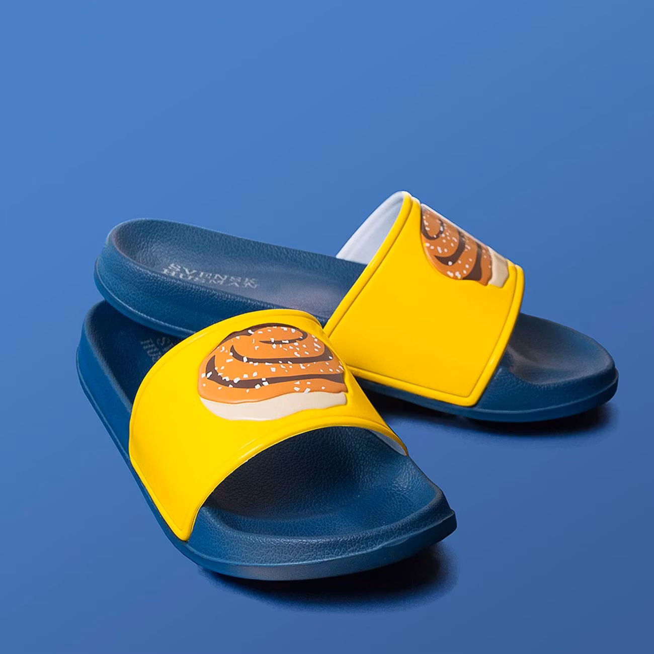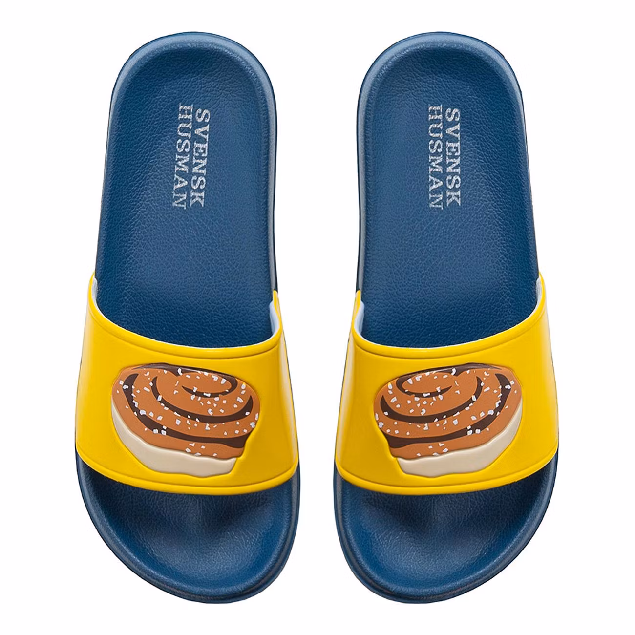Tofflorna kommer i blå och gul färg med motiv av en kanelbulle på vardera toffla. På hälarna är "Svensk Husman" tryckt. Perfekta för den som älskar kanelbullar eller fika i övrigt. Tofflorna passar lika bra på stranden som att traska omkring utomhus i på sommaren och så. Kanske till sommarstugan?