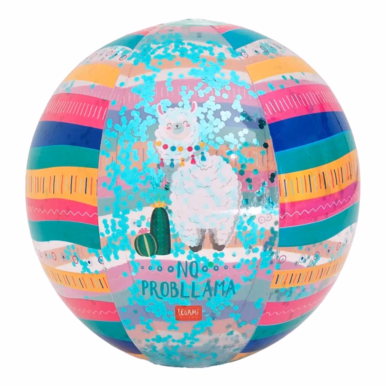 Badboll Lama med Glitter är en uppblåsbar badboll med med små glitterbitar inuti. Idealiskt för stranden, poolen eller i trädgården.