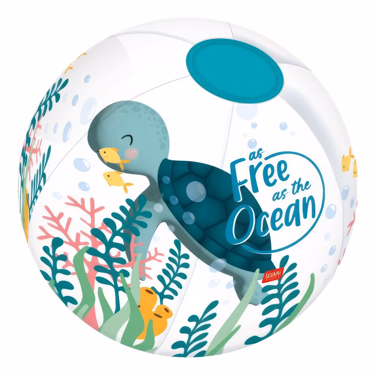 Badboll med Uppblåsbar Sköldpadda är en uppblåsbar badboll med en uppblåsbar sköldpadda inuti. Bollen har motiv av sjögräs och texten "As Free as the Ocean". En rolig sommarpresent att ge till barnet!