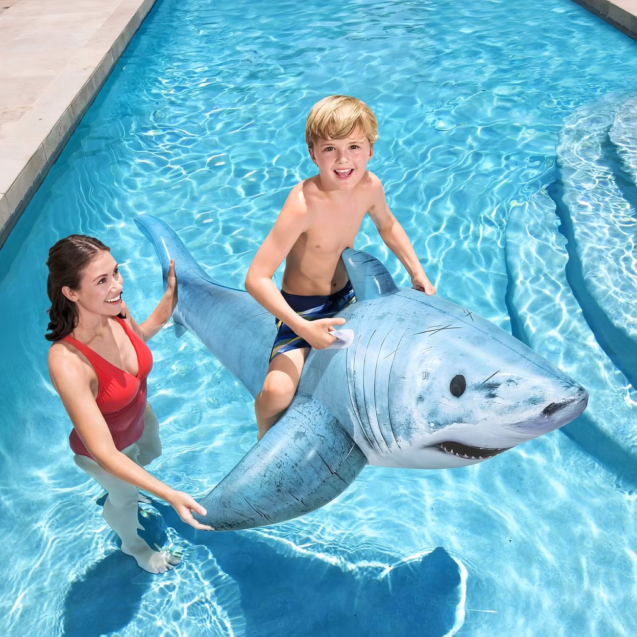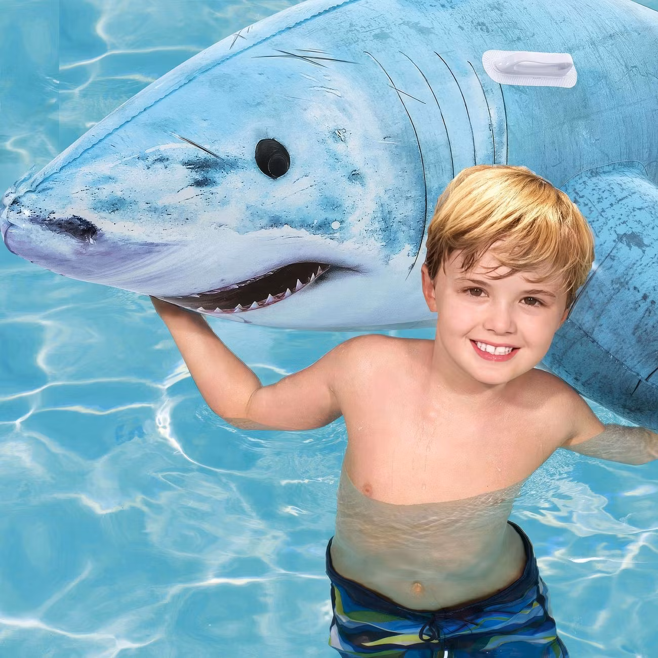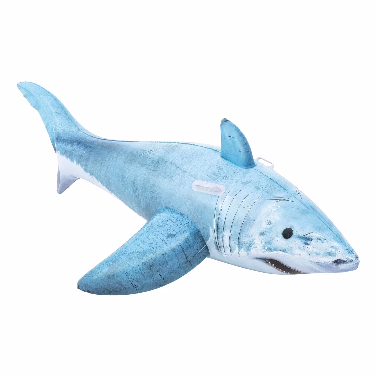 Badmadrass Uppblåsbar Haj är en uppblåsbar haj som kan användas som badleksak och badmadrass i poolen eller vid stranden. Hajen kommer med två stycken handtag på sidorna att hålla fast sig i.