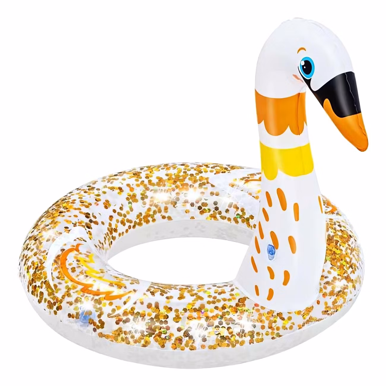 Till barnet som föredrar att glida runt med stil! För vad passar möjligtvis bättre än en glittrig fågel flyta runt i när sommaren tillåter? Perfekt till såväl poolen som stranden!